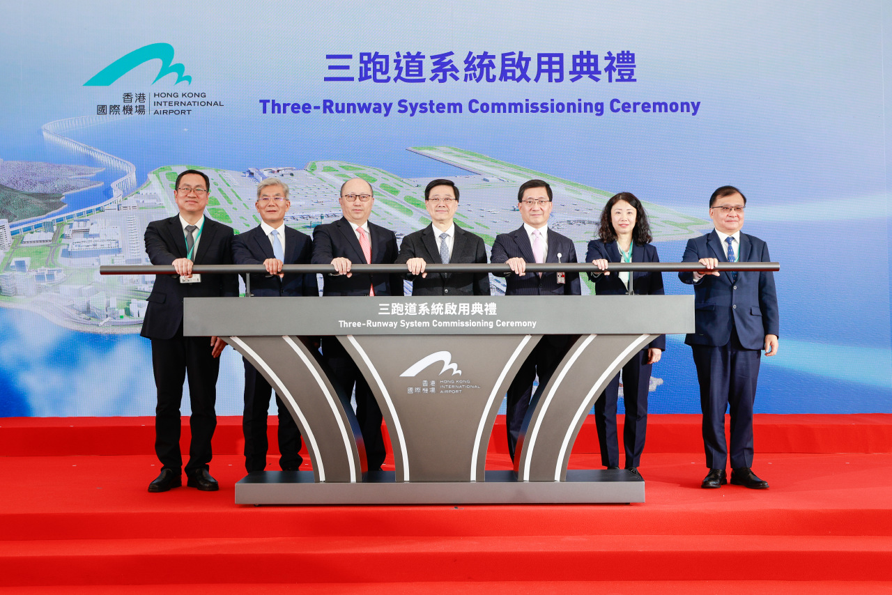11月28日,香港国际机场三跑道系统启用典礼在香港举行。香港特区行政长官李家超、中央政府驻港联络办主任郑雁雄、交通运输部副部长徐成光、中国民用航空局副局长梁楠、外交部驻港特派员公署副特派员方建明、香港特区立法会主席梁君彦、香港机管局主席林天福等出席活动。