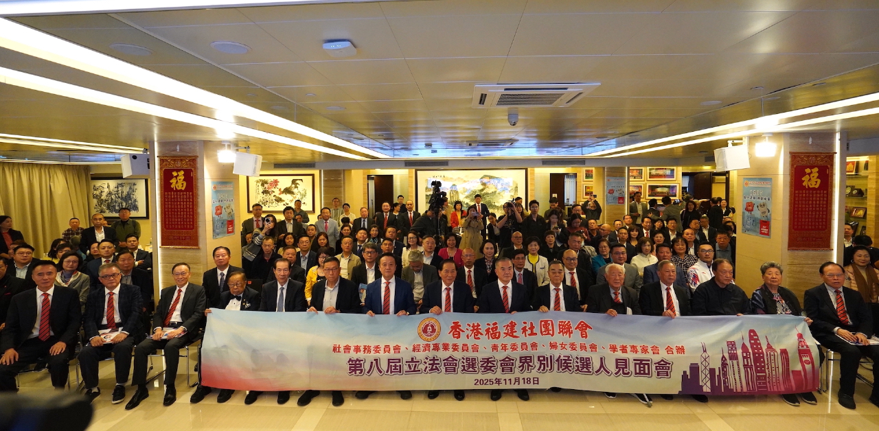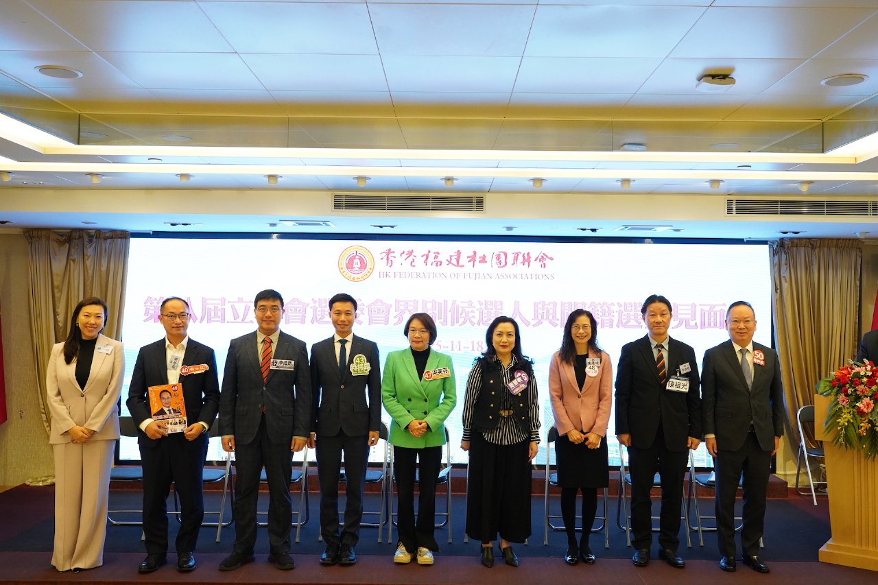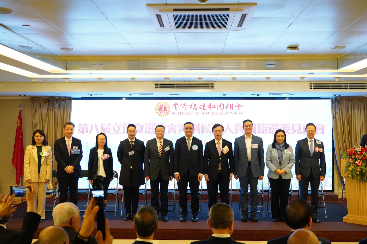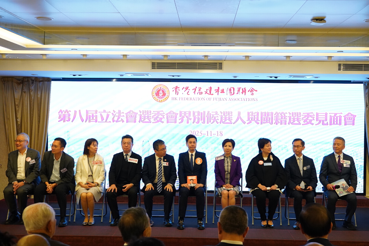 11月18日,香港福建社團聯會舉行第八屆立法會選委會界別候選人見面會,邀請50位選委會界別候選人參加。現場氣氛熱烈,候選人依次作自我介紹並闡述各有側重的政綱,聚焦經濟民生議題進行建設性討論,節奏緊湊而不失理性。全國政協委員、香港福建社團聯會主席施清流致辭時表示,希望閩籍選委以高度的責任感,認真傾聽、慎重投票,選出愛國愛港、能力突出、為民務實的優秀代表,讓立法會成為推動香港發展的正能量。