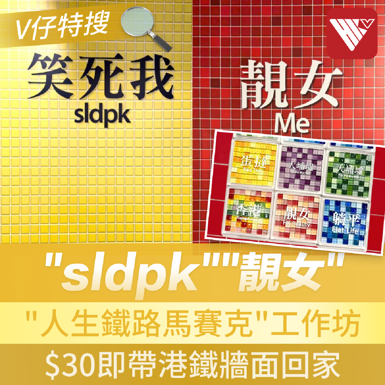 參加者支付港幣30元即可使用各色馬賽克磁石砌出“牆面”,再貼上“靚女”“撐住”“唔該晒”“葵芳”等貼紙,打造專屬的“港式人生鐵路牌”。工作坊完成後,更可享店內購物滿港幣200元減30元優惠。此外,店內還設有打卡牆,可以與“大癲”“笑死我”等潮語合影。