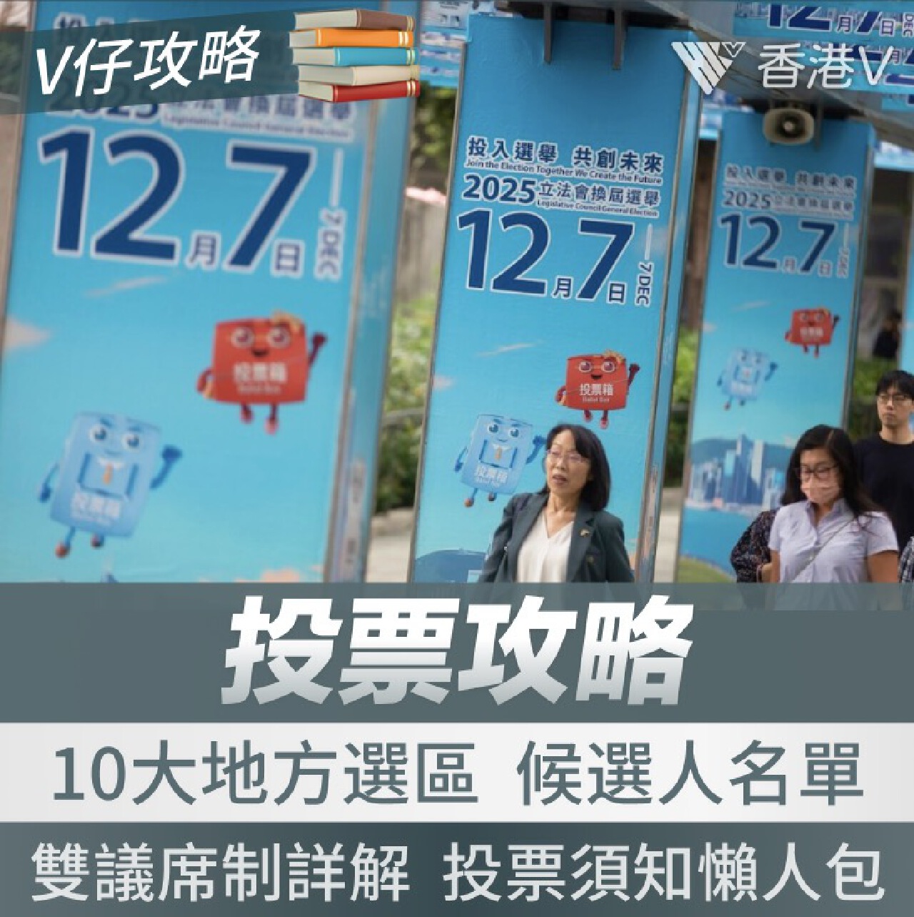 立法會換屆選舉投票日即將臨近。今屆設10個地方選區,採用“雙議席單票制”,每名選民只可在所屬選區投一票。V仔幫您梳理投票前須知,包括如何查投票站、選區分佈及候選人名單,助您快速鐘掌握重點。