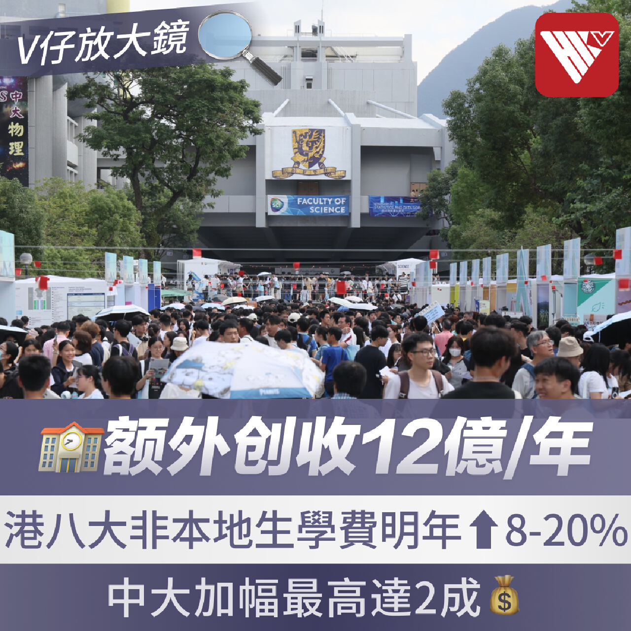 據傳媒報道,近日,本港多間大學相繼發佈2026/27學年招生資訊,八大高校下学年將再次全線調升非本地生學費,加幅由約8%至20%不等。按明年約20萬元學費水平計,如八大取錄非本地新生比率增至50%(以1.5萬個資助學額為基礎),僅計算新入學的一年級生,預計便可帶來12億(約1.5億美元)至15億元的額外收入,推進教研發展。