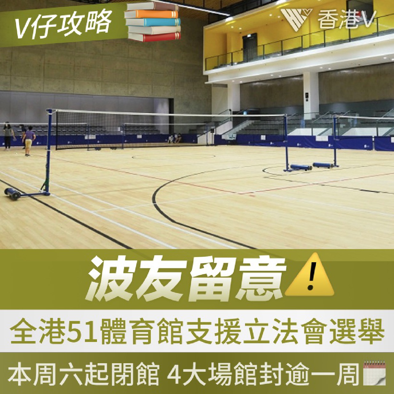第八屆立法會選舉將於本周日(12.7)如期舉行。為配合票站運作及點票工作,康文署昨日(12.3)宣佈轄下51個體育館及相關設施將暫停開放。對於一眾"波友"而言,本周末的運動計劃恐受影響,距離主要封館日僅剩兩天,V仔為大家理閉館安排及受影響名單,建議收藏。