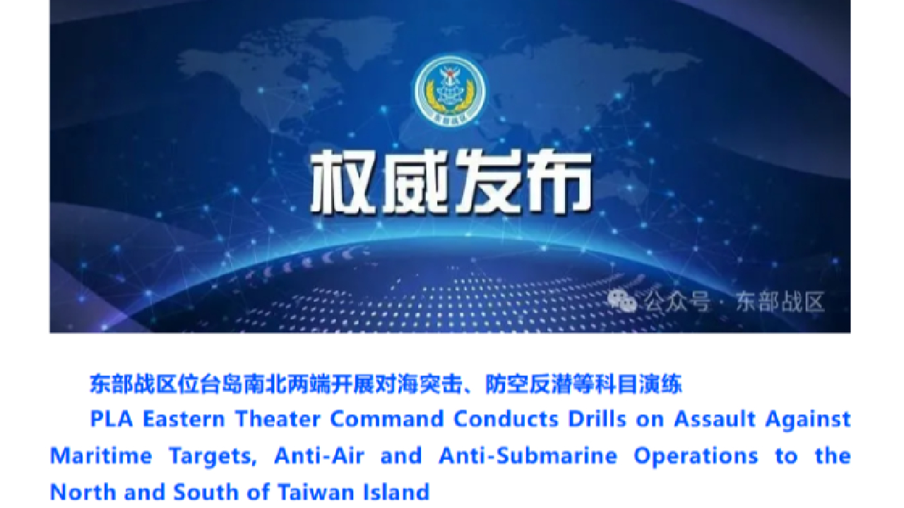 東部戰區位台島南北兩端開展對海突擊、防空反潛等科目演練