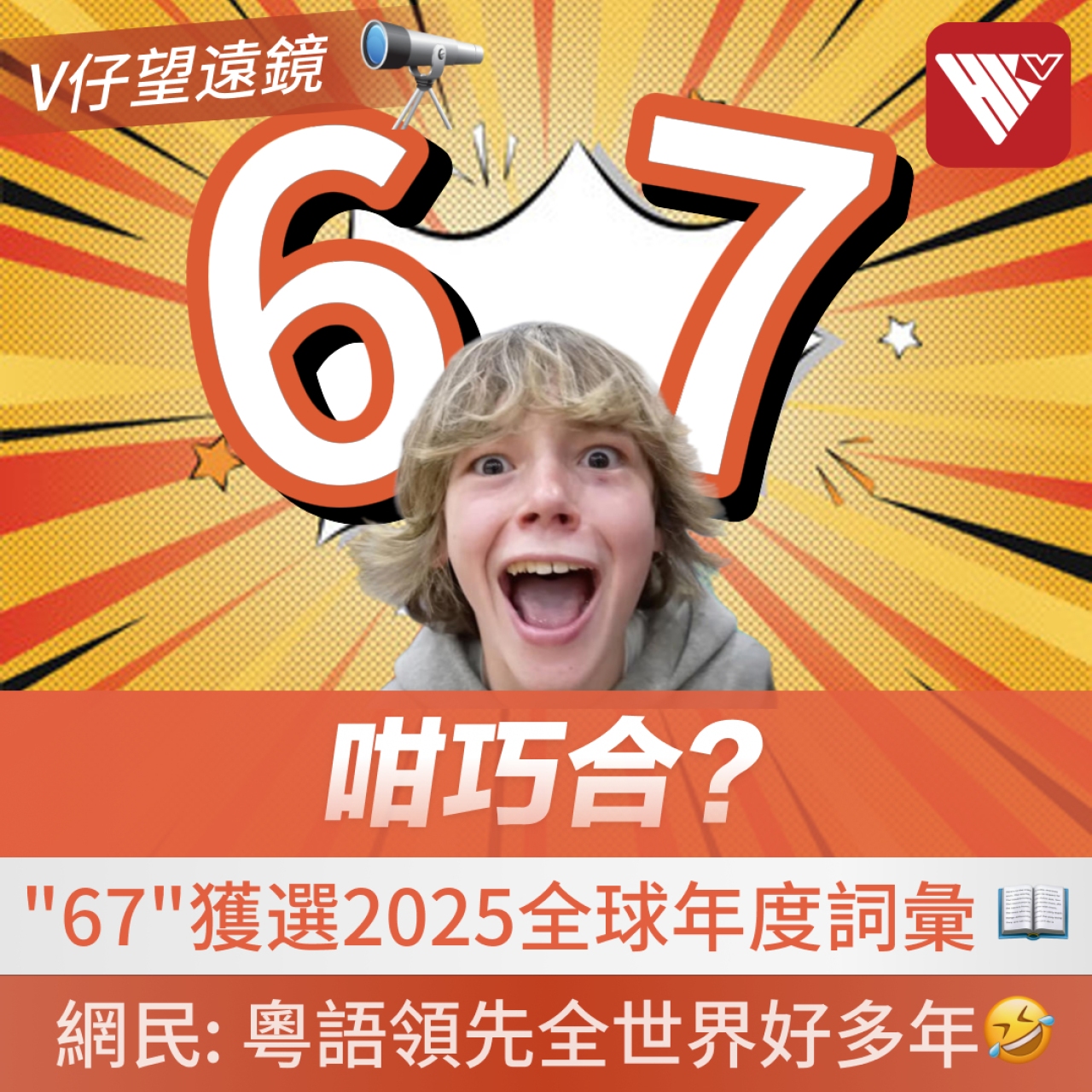 在全球年輕人社交媒體圈中走紅的數字組合“67”,日前獲選為網上詞典Dictionary.com的“年度詞彙”。看似毫無語意的兩個數字,實則反應年輕一代以荒誕、無厘頭方式來表達情緒與態度。由於“67”在粵語中與某粗口諧音相近,隨即於網絡上引發熱烈討論,更有網民幽默留言道:“粵語都領先全世界唔知幾多年”。