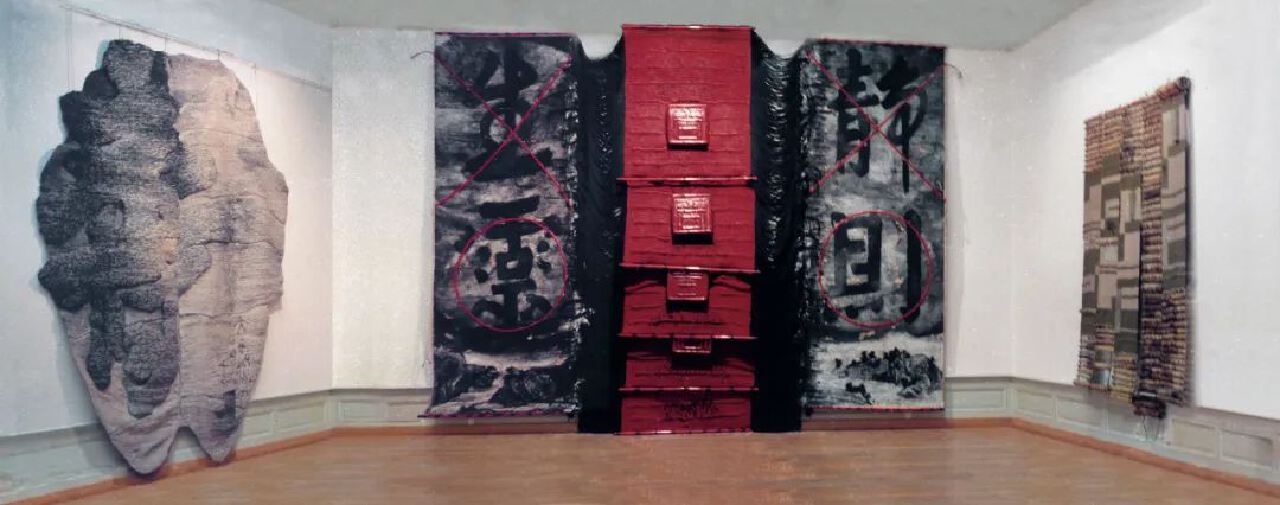 ▲ 1986年,谷文达的《静、则、生、灵》,施慧、朱伟的《寿》,梁绍基的《孙子兵法》三件作品最终入选瑞士“洛桑第十三届国际现代壁挂双年展”