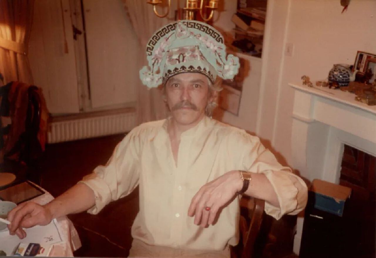 ▲ 二十世纪七十年代中,万曼穿起戏服与家人在巴黎的家中开晚会