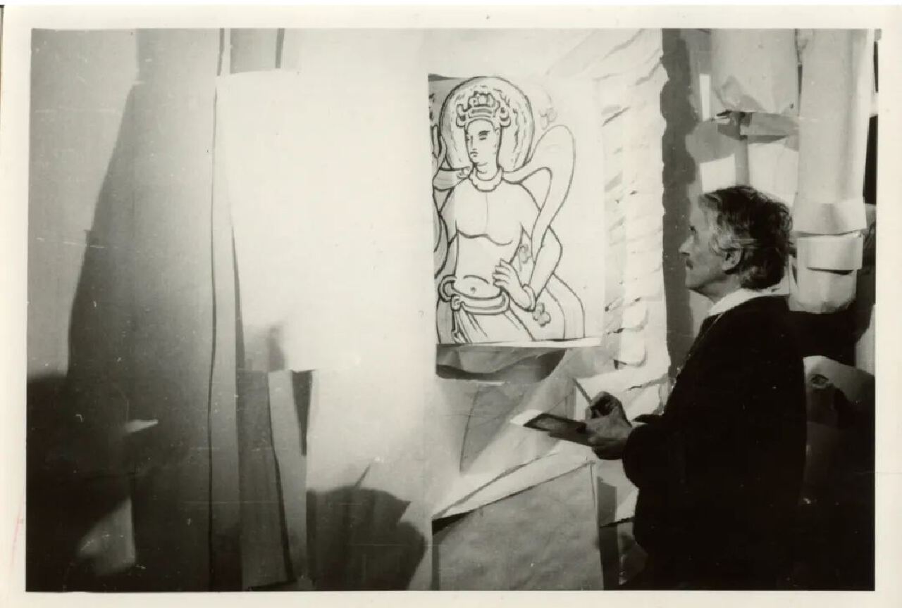 ▲ 1987年1月,万曼在浙江美术学院的工作室创作《丝绸之路遐想》