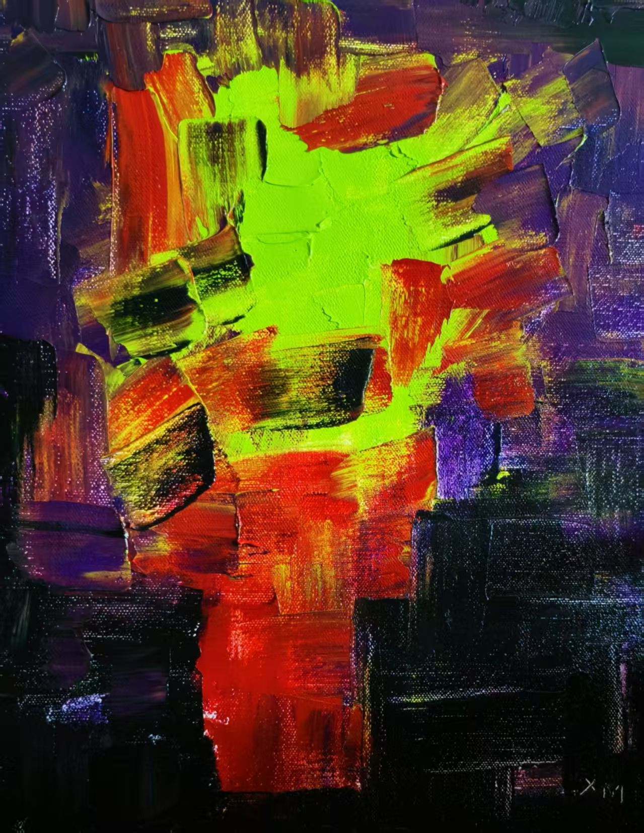 肖梦对色彩的理解和把握有其独到之处,她以女性的细腻在抽象的画面中准确表达出自己内心的情绪和感悟,我把这种表达方式称为“温柔的抽象表现主义”。