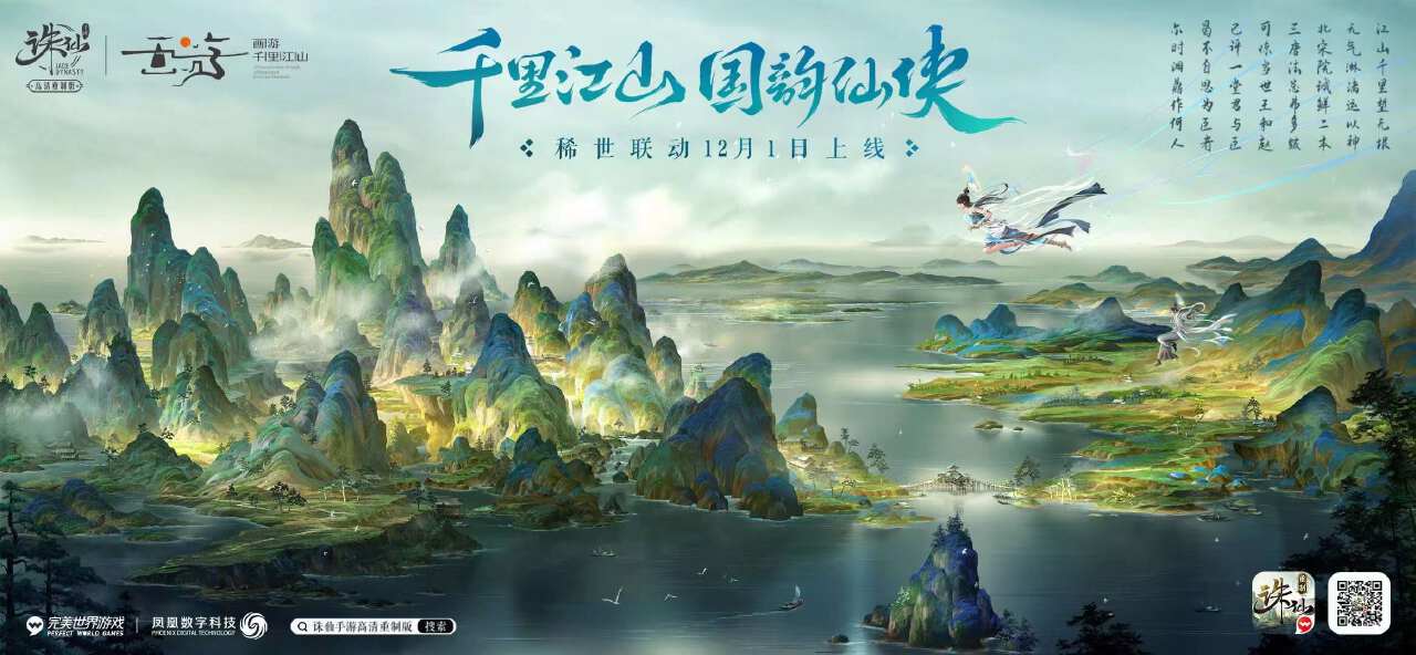 《诛仙》手游全新版本将于12月1日正式开启,凤凰数字科技携《画游千里江山——故宫沉浸艺术展》与《诛仙》手游合作,首次联动传世之作《千里江山图》数字版,带玩家们沉浸式体验千里江山画中游的美感与乐趣。全新版本中,游戏将推出限时联动任务,玩家们在墨染青绿的仙界中游历的同时,更可穿越时光,亲历《千里江山图》的绘制过程。