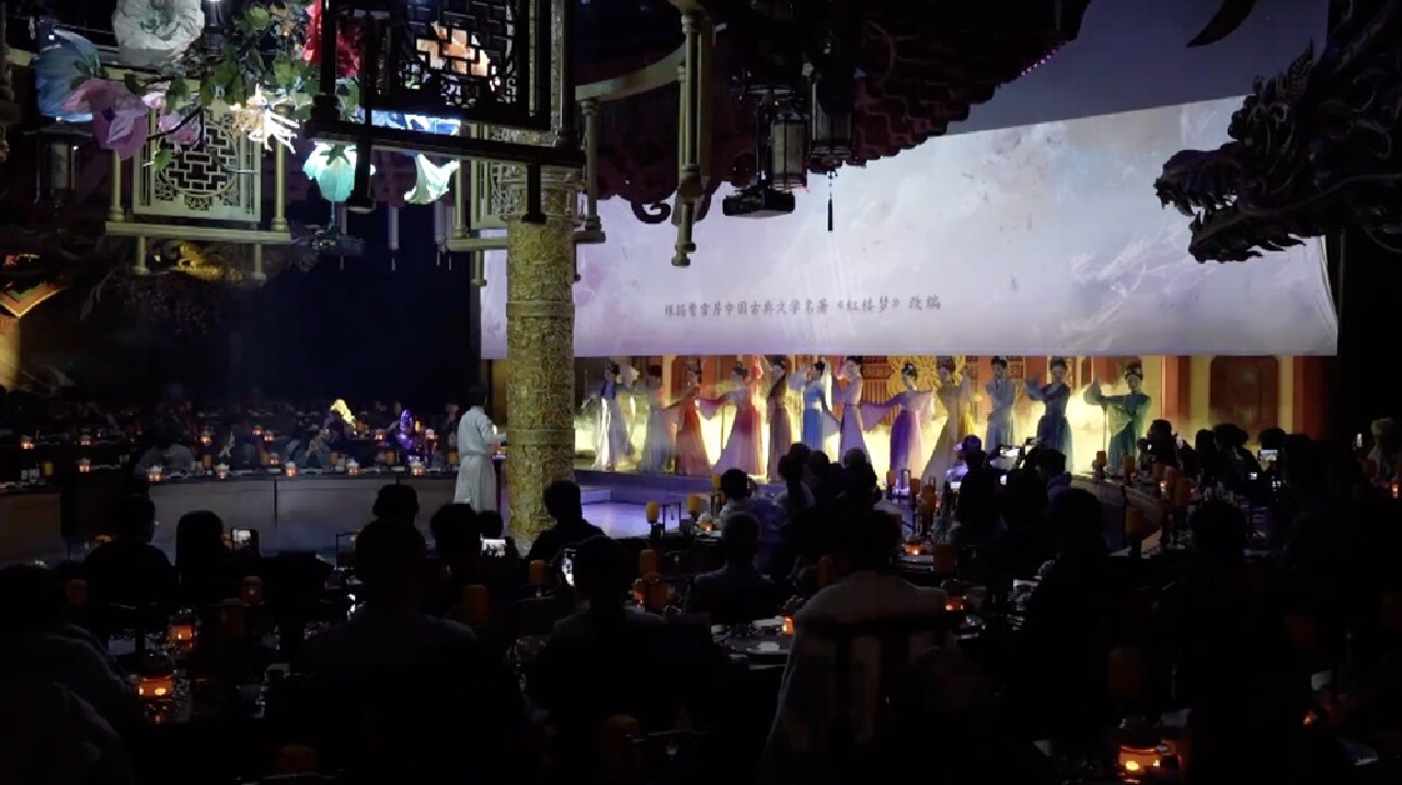 劉姥姥進大觀園、元妃省親、寶玉摔玉,《紅樓夢》中的經典情節一一呈現,賓客們一邊欣賞節目,一邊享用特色美食,沉浸式體驗大觀園人物的悲歡喜樂。一頓飯下來,花銷並不小,但仍有不少年輕人,願意為“情緒價值”買單。