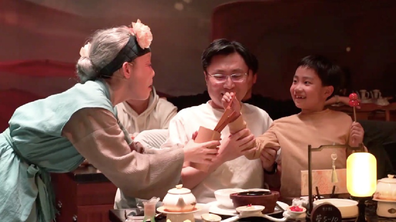 北京餐飲門店運營負責人 李麗君:“其實我們很多人現在就是一個情緒價值的提供,我們可能在中間會穿插飛花令,這種飛花令可能比如說我們在劉姥姥醉游大觀園,她可能帶著我們的王熙鳳跟我們的現場的一個客人去進行互動,就是從一個看客,作為了一個融入到我們的環境裡邊、然後代入到我們劇情裡面的角色。所以這也蠻吸引我們的一個就是我們客人的年輕人的。”