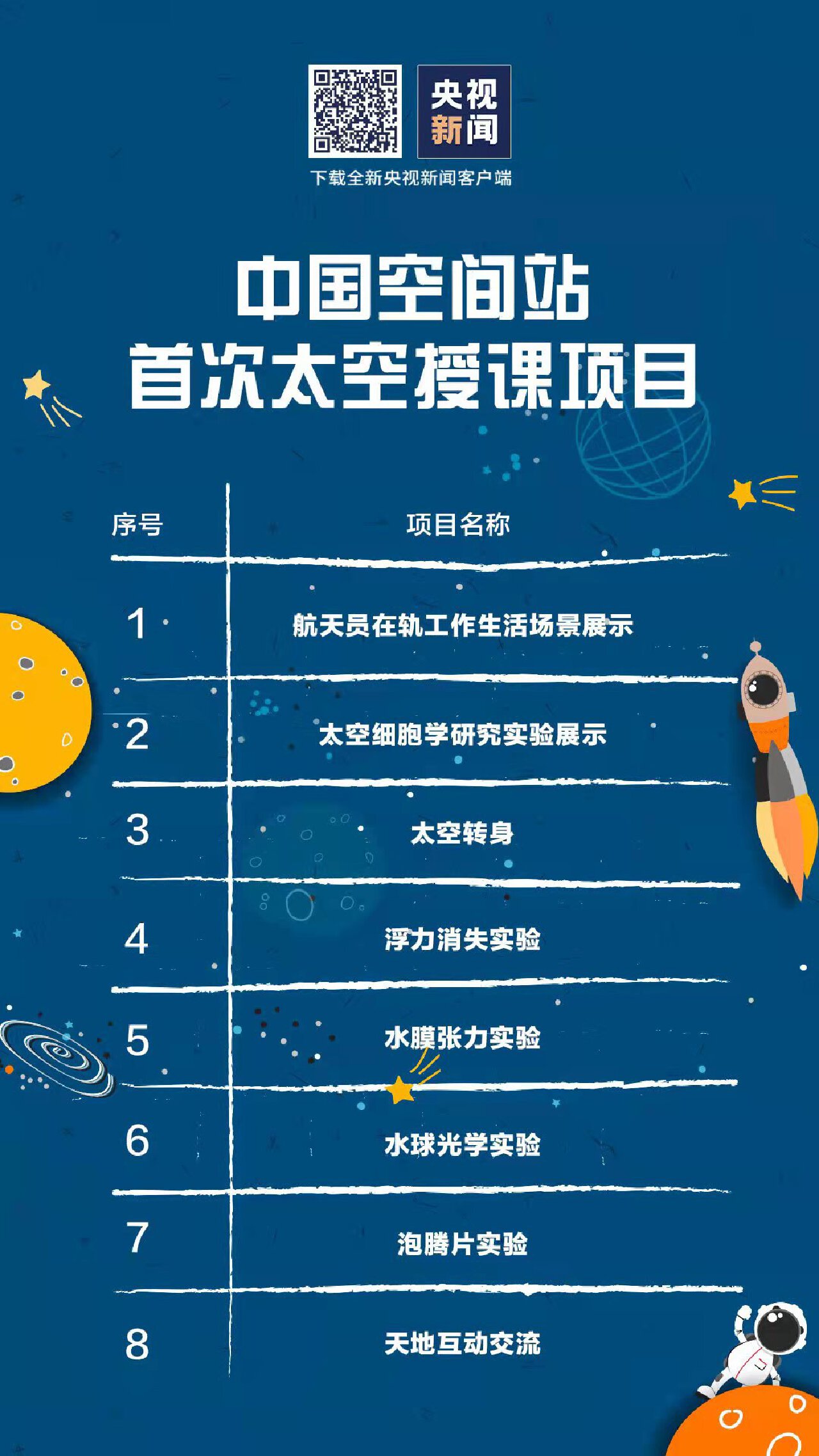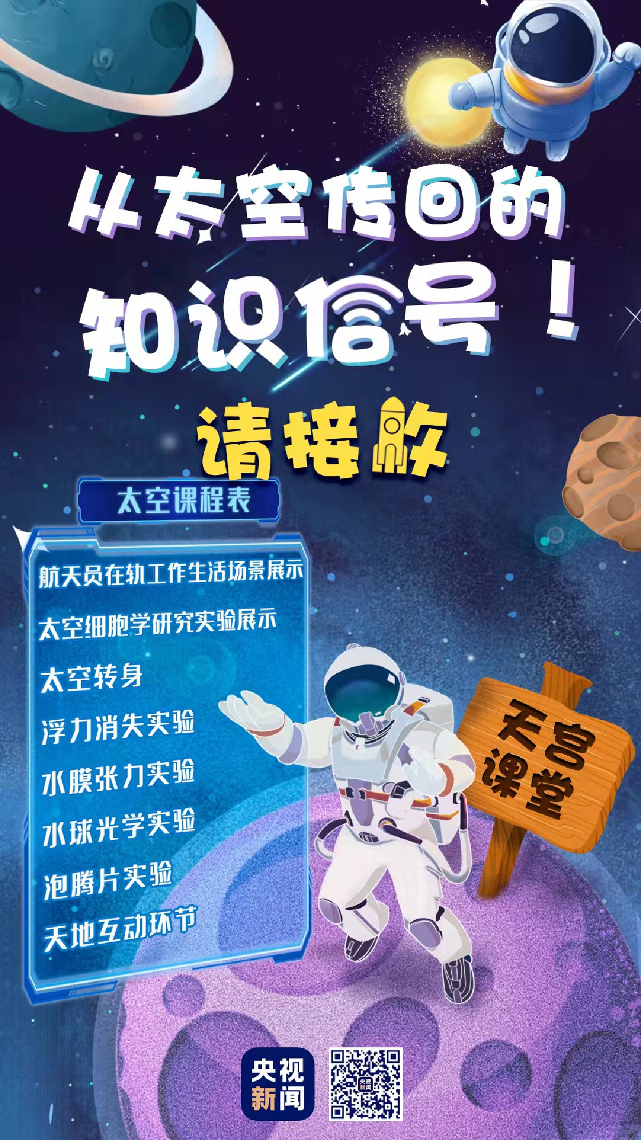 中国航天员真诚邀请广大青少年在地面同步尝试开展相关实验,从天地差异中感知宇宙的奥秘、体验探索的乐趣。