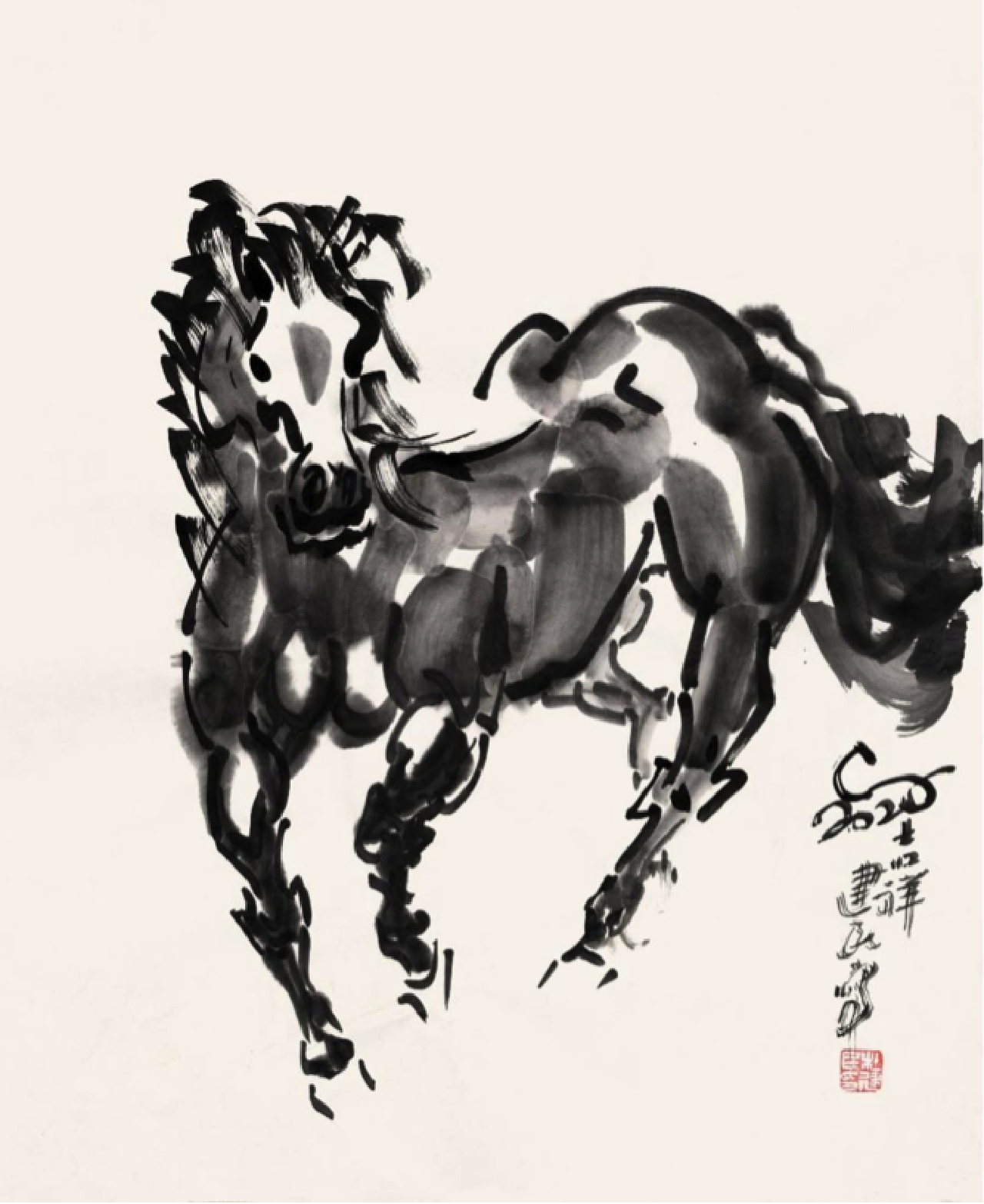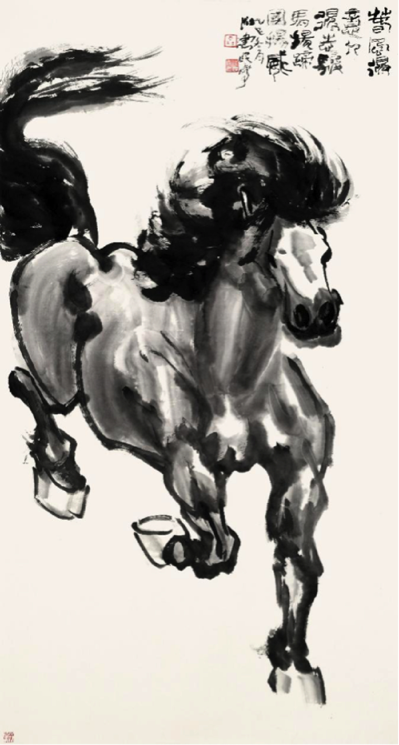 徐悲鸿笔下的骏马是二十世纪中国美术史上的一座丰碑,他将西方写实技法与中国笔墨精神熔于一炉,创造出前所未有的视觉张力。徐悲鸿所绘的“马”不仅是艺术形象的革新,更是民族精神的图腾——在抗战岁月中,一匹匹骏马化为不屈不挠、奋勇抗争精神的象征,激励着无数仁人志士。新中国成立后,在徐悲鸿的影响下,许多名家大师以“马”为题,创作出诸多佳作。时至今日,依然有一批画“马”高手活跃于中国画坛,杜建民是其中代表。