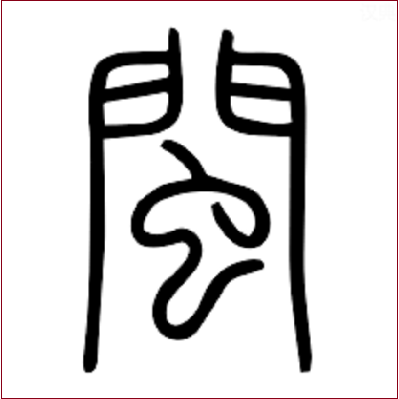这是个象形字,意思是:门里有蛇。