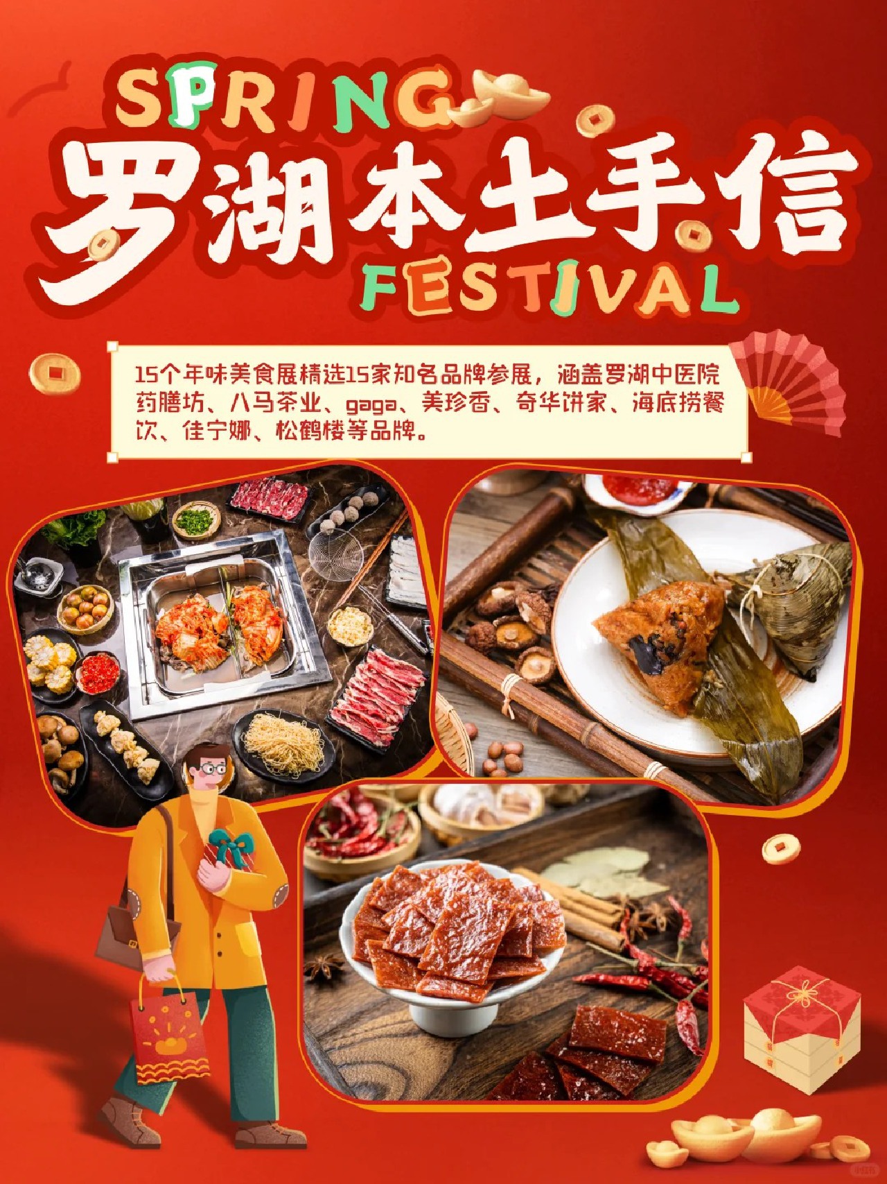 精选15个知名品牌风味,罗湖中医院药膳坊中药奶茶、gaga茶饮轻食 八马茶业香茗、美珍香肉干、奇华饼家、海底捞餐饮、佳宁娜、松鹤楼......年味美食吃得过瘾买得开心。