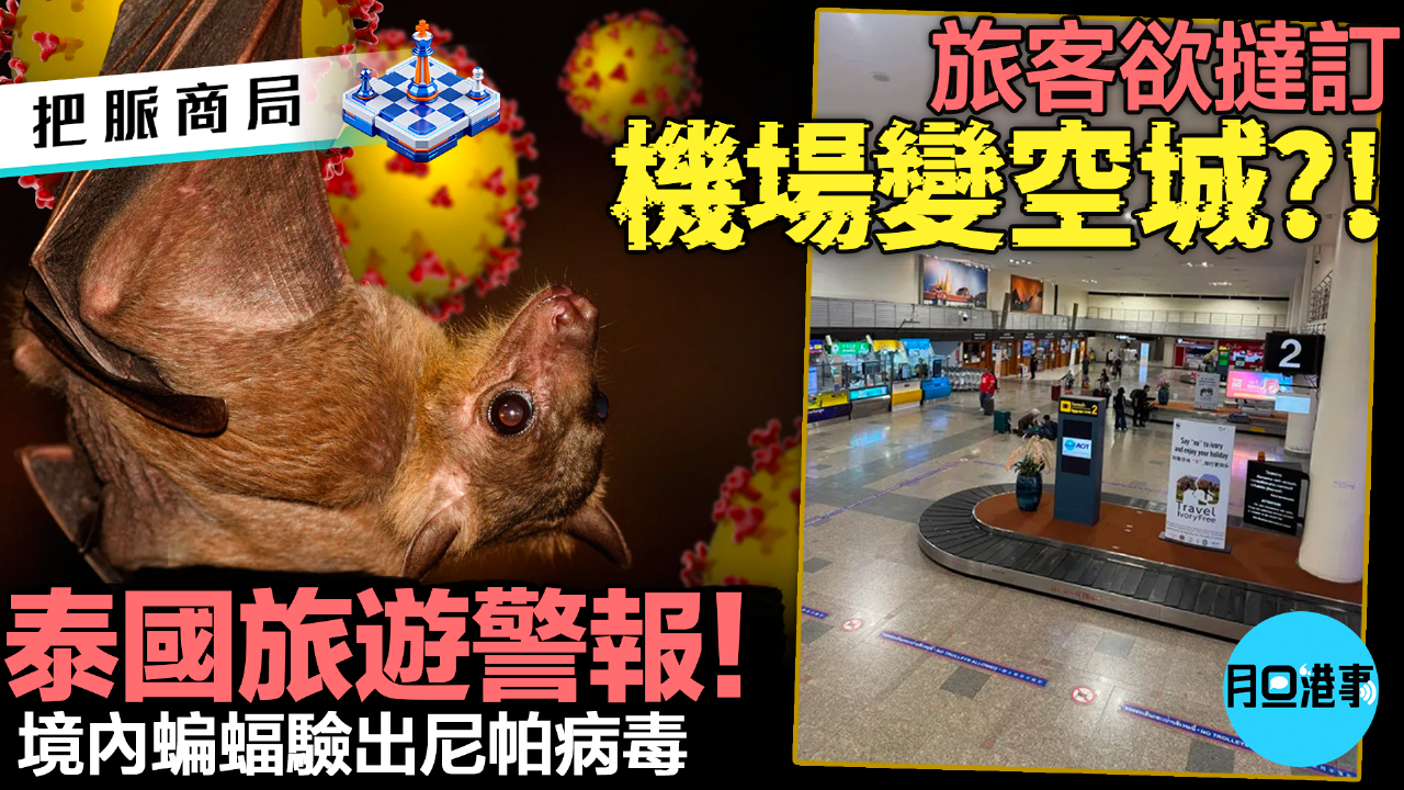 泰國公共衛生部門近日發出警報,指當地部分果蝠(果子狸蝙蝠)驗出帶有致命“尼帕病毒”(Nipah Virus),該病毒可動物傳人及人傳人,感染後死亡率高達70%以上。雖然泰國境內尚未錄得人類確診個案,但當局不敢掉以輕心,已在曼谷素萬那普、廊曼及布吉三大國際機場,對來自印度及孟加拉等疫區的入境旅客實施嚴格體溫篩查,嚴防病毒跨境輸入。