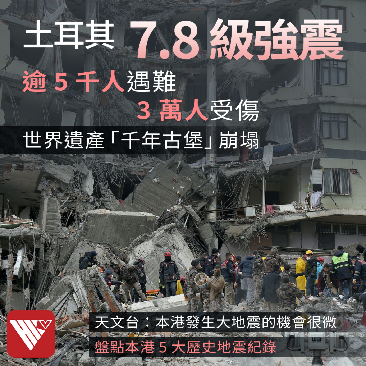 2月6日土耳其東南部遭遇80年來最嚴重地震,重創南部多座城鎮。由於震源深度較淺,受災地區損毀嚴重,其中世界遺產加濟安泰普城堡、沙欣貝伊清真寺等古蹟景點,亦不敵強震崩塌。另有機場跑道被震斷,多班航班被逼取消。截止今日(2.8)死亡人數升至5894人,超過3萬人受傷。
