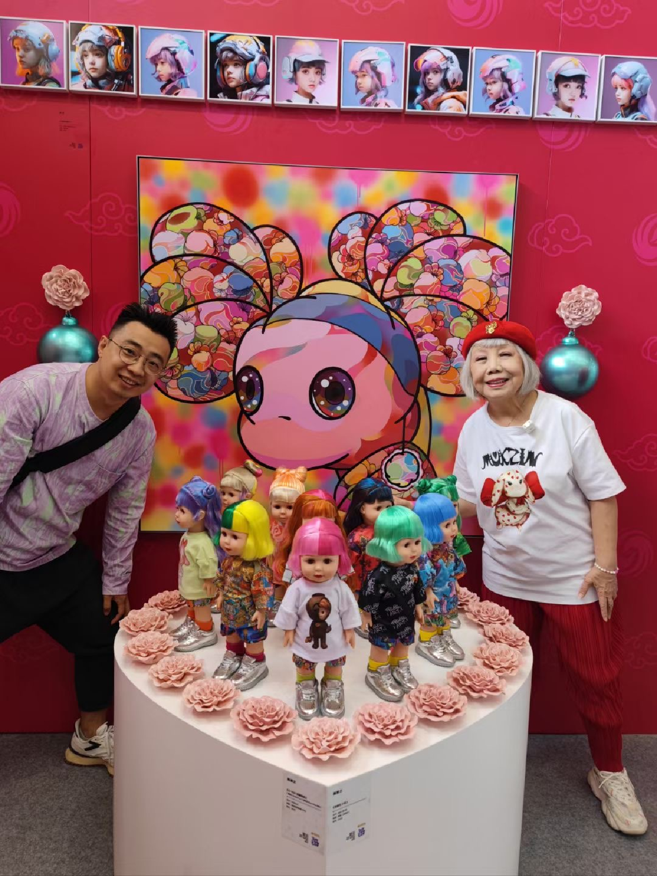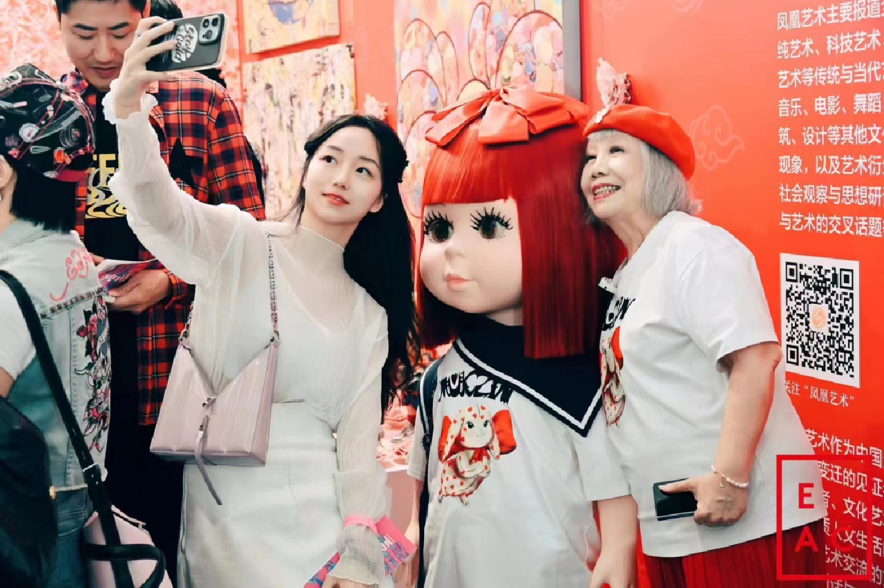 在一系列潮流藝術的專業學術文章後,如今萌奶奶在本次“鳳凰藝術”的展位上再度開啟其藝術家身份首秀。在其1比1的大型玩偶旁接受“鳳凰藝術”專訪時,陸蓉之激動地表示:“我今天特別興奮,好像回到我的童年。我小的時候經常當眾揮毫,13歲就開個展,那是我天才兒童藝術家的記憶。在潮博會裏面大部分的作品其實都很年輕化,在這裏我已經忘了我已經72歲了,甚至有一種穿梭時空的感覺。”