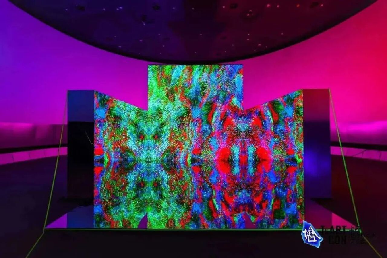 其中,原生硅基硬體造型呈中心對稱的硅基王座巨像,同時呈現出超人類尺度感觀的巨型互動形態,作為觀者可進行硬體內的融入性交互或硬體外的解構性視覺感知。軟體寄生程序部分為交互融合的程序作品。表層程序交互為上萬億的粒子通過二進制指令的編織與發散,反映量子力學中此作品觀者的觀測狀態時注意力軌跡如粒子軌跡方向不可測的狀態。裏層程序交互被設定為程序與每件硬體交互的交互數據記錄,且每次交互的信息都被實時永恆記錄在區塊鏈網絡上,交互記錄數據會增漲且不可逆,程序軟體本身也會因不斷與新物理硬體交互再進化、生長、遷躍,從而呈現硅基生命體特徵。