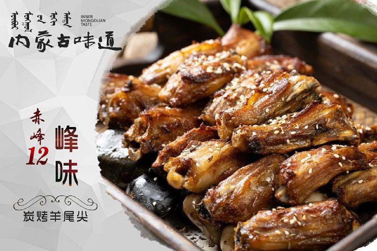 爱吃会吃的赤峰人总能找到食物最佳的呈现方式。炭烤羊尾尖是赤峰独创的地域菜,选用羔羊羊尾骨腌制、炖熟、用蒙古火山石炙火烤制而成。表皮焦香,酱红油亮,醇香鲜嫩,胶质丰富。与传统印象中大口吃肉不同,尾骨之间的细肉,细细剔出吃净,使人意犹未尽,欲罢不能。慢品细咽的回味之中,便留下了最深的赤峰味道。