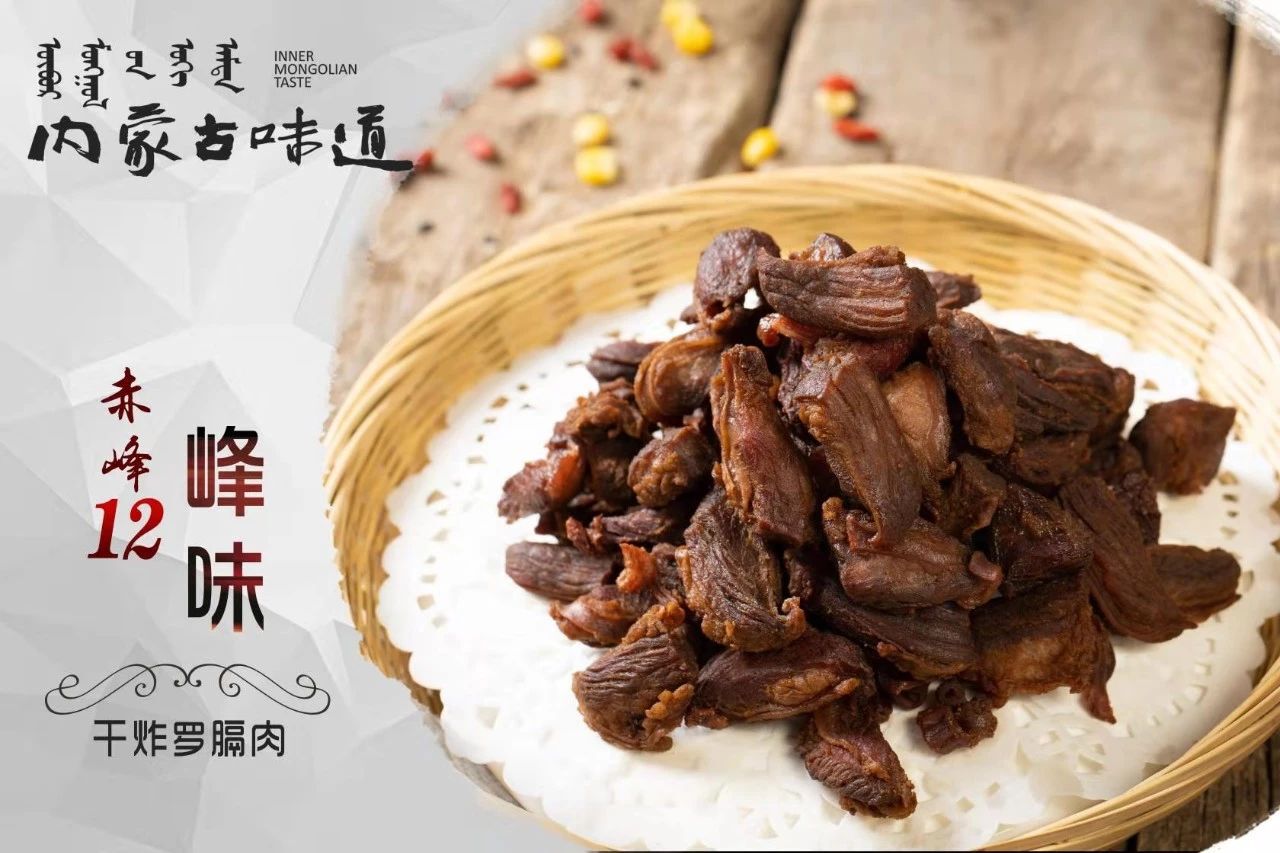 享有我国第三大天鹅湖美誉的达里诺尔湖盛产的瓦氏雅罗鱼(俗称华子鱼)营养丰富,肉质细腻,由于个头不大,当地人最喜干炸食之。高温迅速锁住鱼肉的鲜美味道,冷水鱼极品的肉质达到极佳呈现。干炸华子鱼色泽金黄,外酥里嫩,留给人难以忘怀的鲜美味道;同样适宜干炸的还有猪肝脏连接腹腔的膜肉——罗隔肉,干炸罗隔肉撒上椒盐等调味料,嚼劲十足,外脆里韧,干香浓郁,满口生香,是赤峰人饭桌上绝佳的下酒菜。