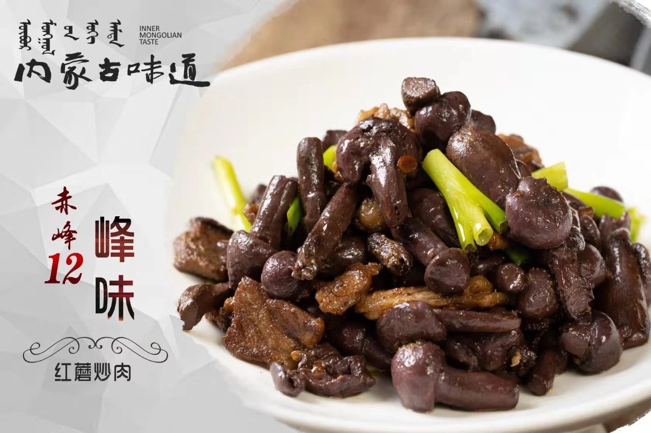 猪肉作为中国人饭桌上必不可少的食材,在赤峰人手中也千变万化,峰味十足。赤峰锅包肉口味讲究咸、鲜、酥、脆,与东北地区的锅包肉相比口感更为酥脆。地道的赤峰锅包肉微带甜酸,蒜香浓郁,是赤峰各大小饭店点击率最高的家常菜;赤峰美林谷气候凉爽,雨量充沛,特别适宜红蘑生长。红蘑营养价值极高,菌肉肥厚,有“素肉”之称。红蘑炒肉将野生红蘑与猪肉不同的风味发挥出一种奇妙的和谐,红蘑经过猪肉提香,脂香浸润,口感丰腴,异常鲜美,成为老少皆爱的山珍美味;杀猪菜,顾名思义就是过年杀猪当天用猪的血脖肉、猪血肠以及干白菜一起做成的大烩菜。血脖肉肥瘦相间,血肠嫩而不散、干白菜中和油腻,一锅杀猪菜,成为赤峰人冬日团聚的最佳选择,亦是赤峰人过年回家最大的惦念。