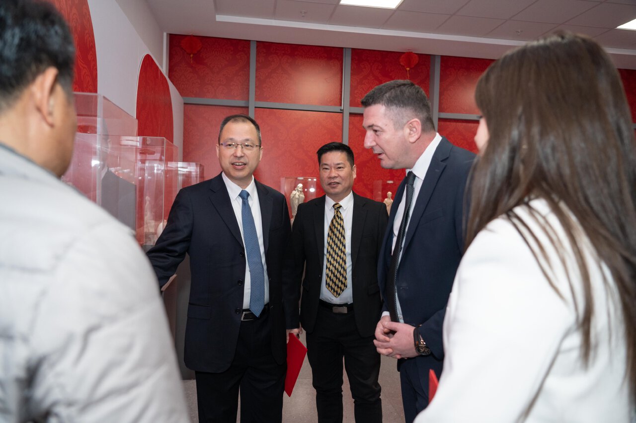 开幕式现场,塞尔维亚国民议会副议长玛丽娜·拉古什,贝尔格莱德国家剧院院长德拉戈柳布·巴伊奇,贝尔格莱德一带一路研究所所长博扬·拉里奇,中国驻塞尔维亚大使馆李明大使,中国驻塞尔维亚使馆张喆公参,塞尔维亚中资企业商会会长杨栋,塞尔维亚华人华侨商业总会会长金东荣,德化县副县长林亮国等领导出席开幕式,中塞两国文化、艺术与博物馆界的百余名嘉宾齐聚,共同见证这一历史性时刻。