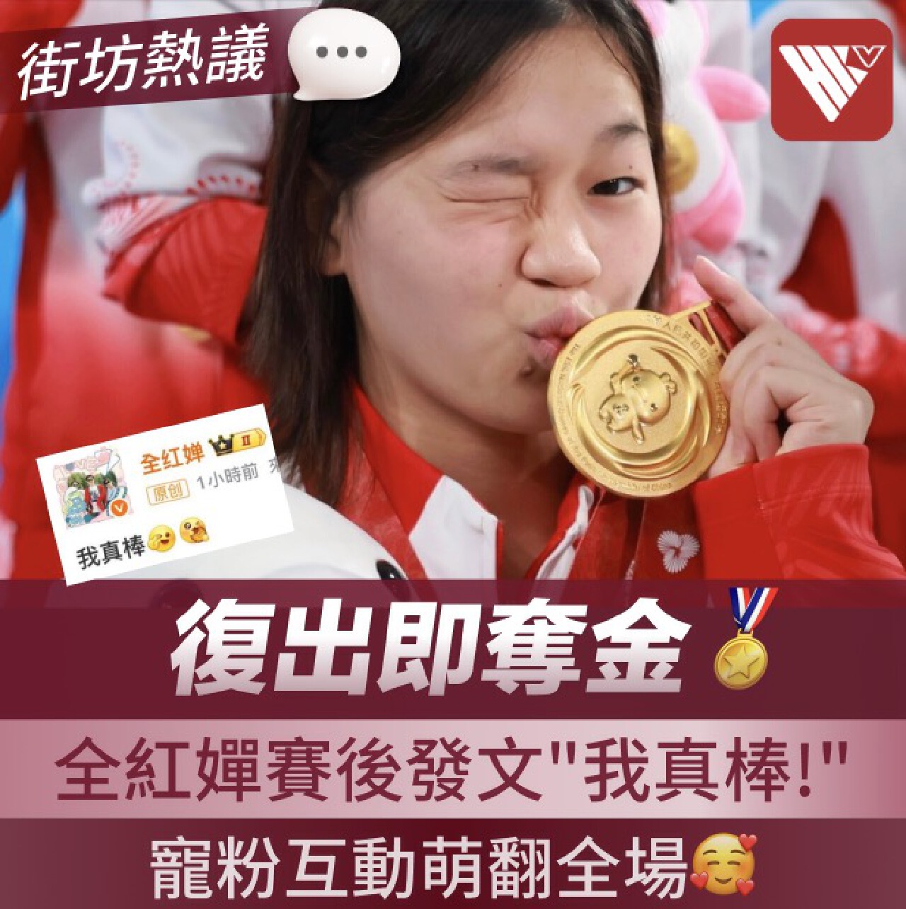 全運會焦點賽事跳水項目昨日(11.2)正式開鑼。萬眾期待的奧運冠軍全紅嬋,在休戰長達6個月後迎來復出首秀,她不負眾望,不僅助廣東隊成功衛冕女子團體冠軍,奪得本屆賽事跳水項目首金,賽後更興奮發文自勉:"我真棒!",引發全城熱話。