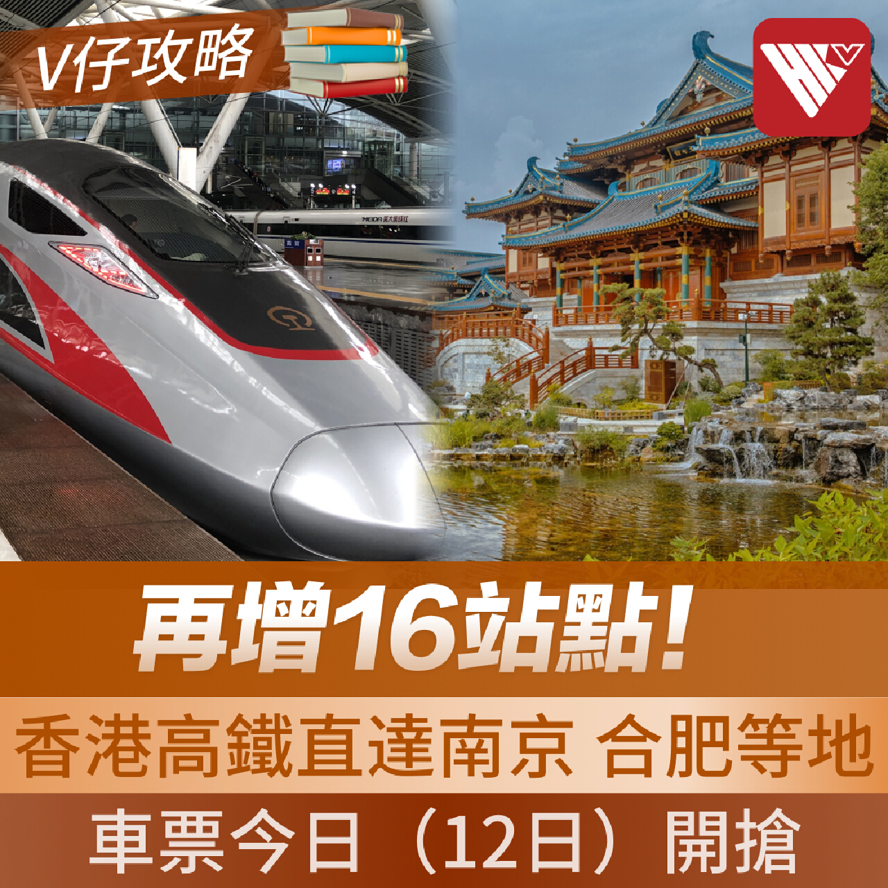 港鐵宣佈,本月26日起,由西九龍高鐵站出發列車的直達站點將新增16個,包括南京、無錫、合肥等熱門旅遊城市及文化古都,令香港高鐵直達站點總數增至110個。乘客可於今日(12日)起預購相關車票。
