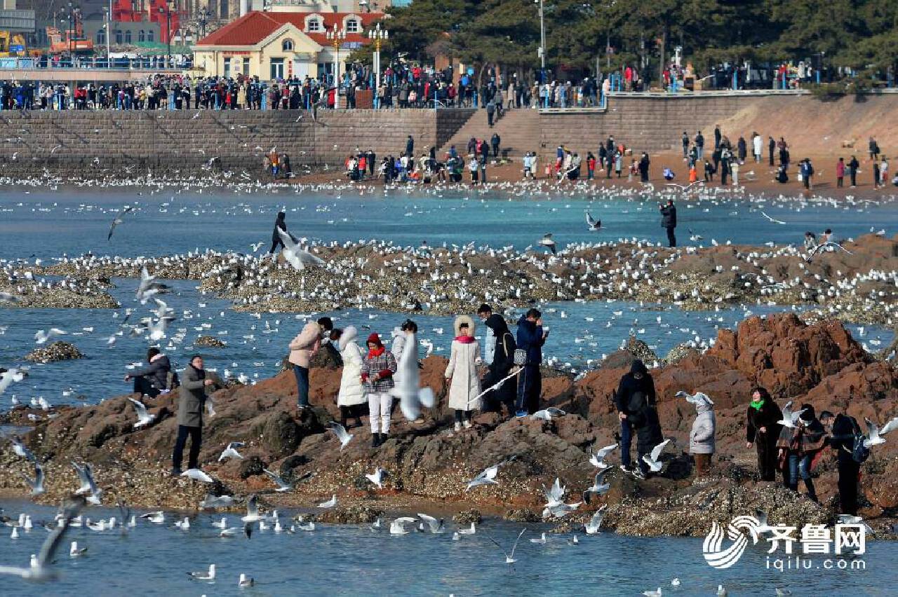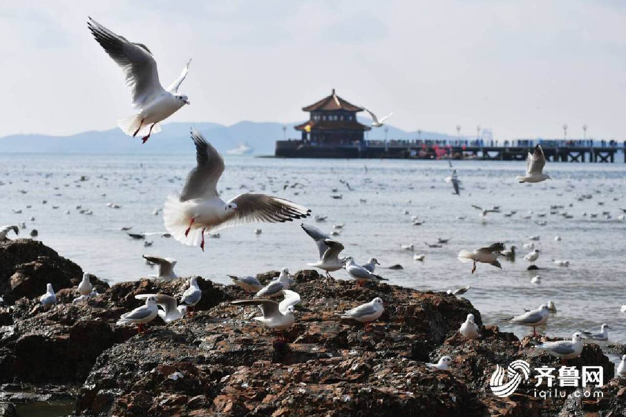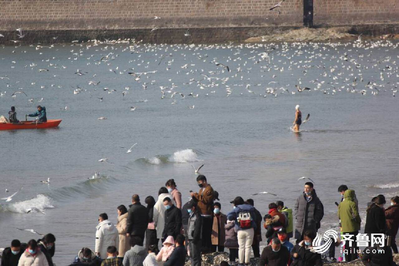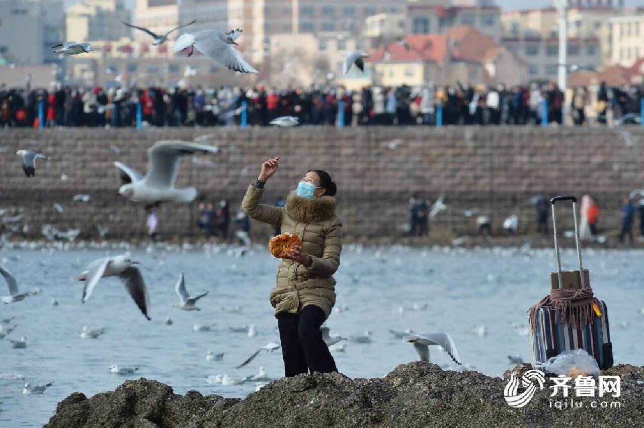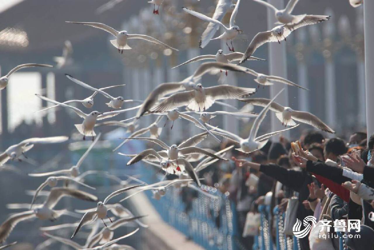 2021年2月16日,大批海鷗飛抵青島棧橋景區,吸引遊人在青島棧橋景區賞海鷗。 在山東省青島市棧橋景區成群海鷗起舞,吸引遊人投餵食物。密密麻麻的海鷗群一點也不怕人,也許早已習慣了青島的熱情。麵包、火腿、餅乾......飛抵棧橋的海鷗也享受了一頓新春大餐。 遊人用畫筆記錄此刻美好,獨家限定的景觀落紙成畫,將人與自然和諧相處的景象永久留存。千姿百態的海鷗與遊人在棧橋偶遇,每一幀定格都是美好的遇見。 岸上看還不夠,冬泳愛好者偏要進海里跟海鷗來一把“親密接觸”。