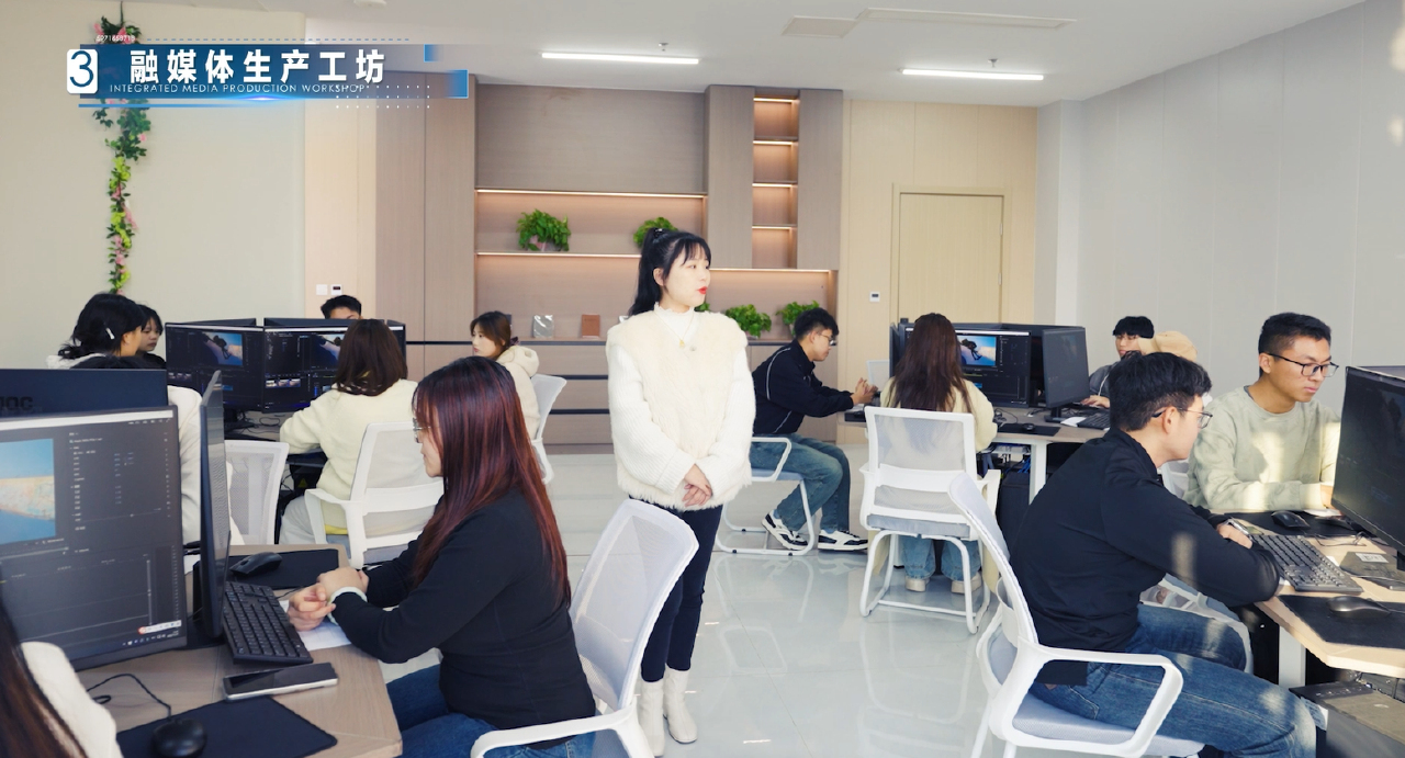 凤凰数媒公司的企业工程师常驻实践中心,直接指导学生进行短视频制作、AIGC内容生成、VR场景开发等前沿项目。学生通过参与这些真实商业项目,在提升专业技能的同时,也为企业创造了实际价值。企业工程师则根据项目进展与学生反馈,动态调整教学重点与方法,从而有效提升了人才培养的针对性与实效性。同时,中心注重“以赛促学、以赛促创”,积极组织学生参与行业权威赛事,以前沿技术工坊为支撑,将竞赛项目转化为教学案例,进一步激发学生创新意识与实践能力,增强其在就业市场中的竞争力。