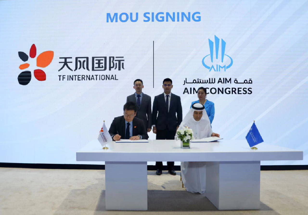 天风国际资产管理部主管、董事总经理顾尔东及天风国际资产管理部执行董事戴智杰分别代表天风国际与AIM全球基金会主席Dawood AI Shezaw及丝绸之路金融与科技研究中心主席唐堂进行签署。