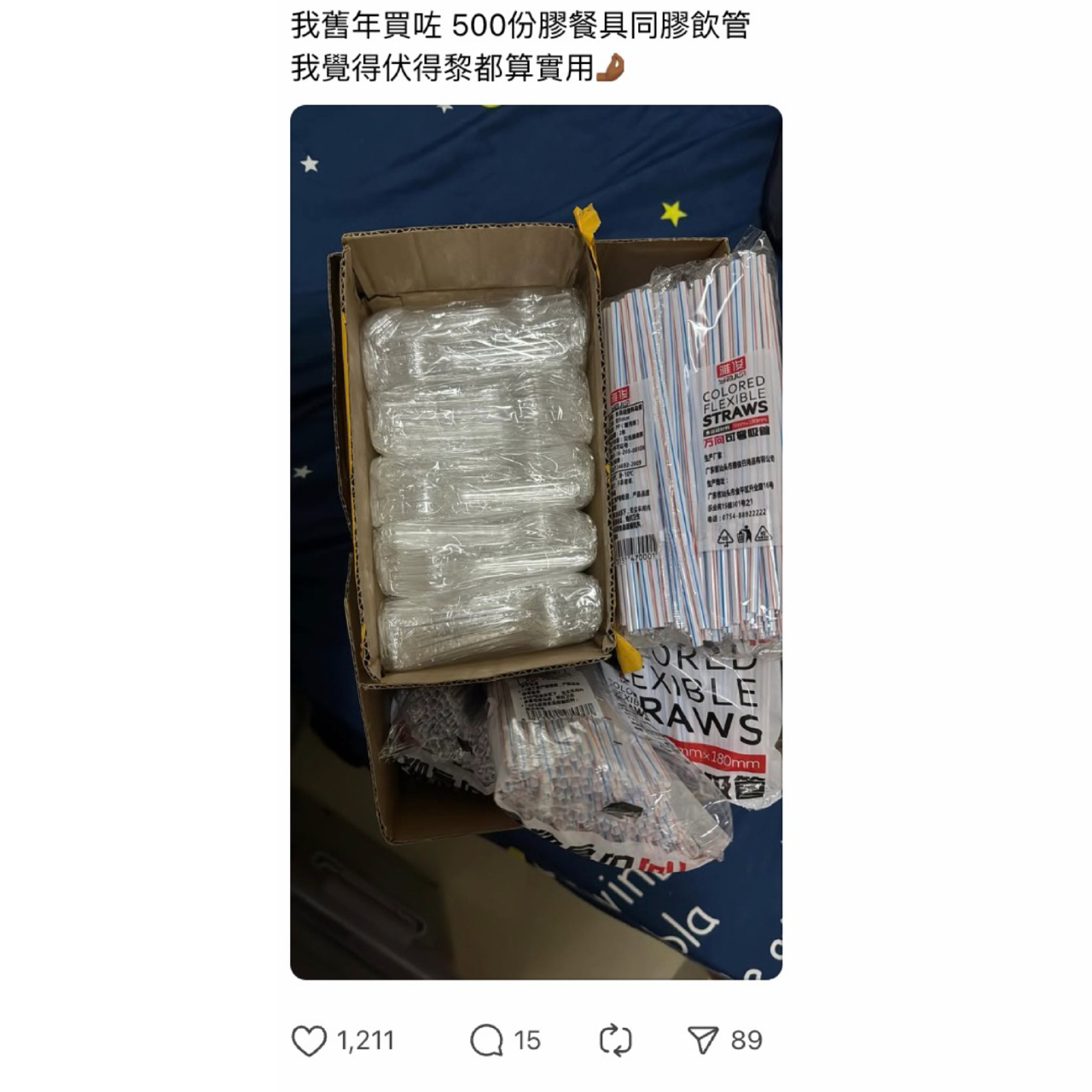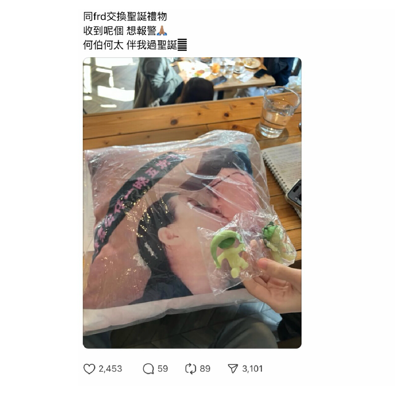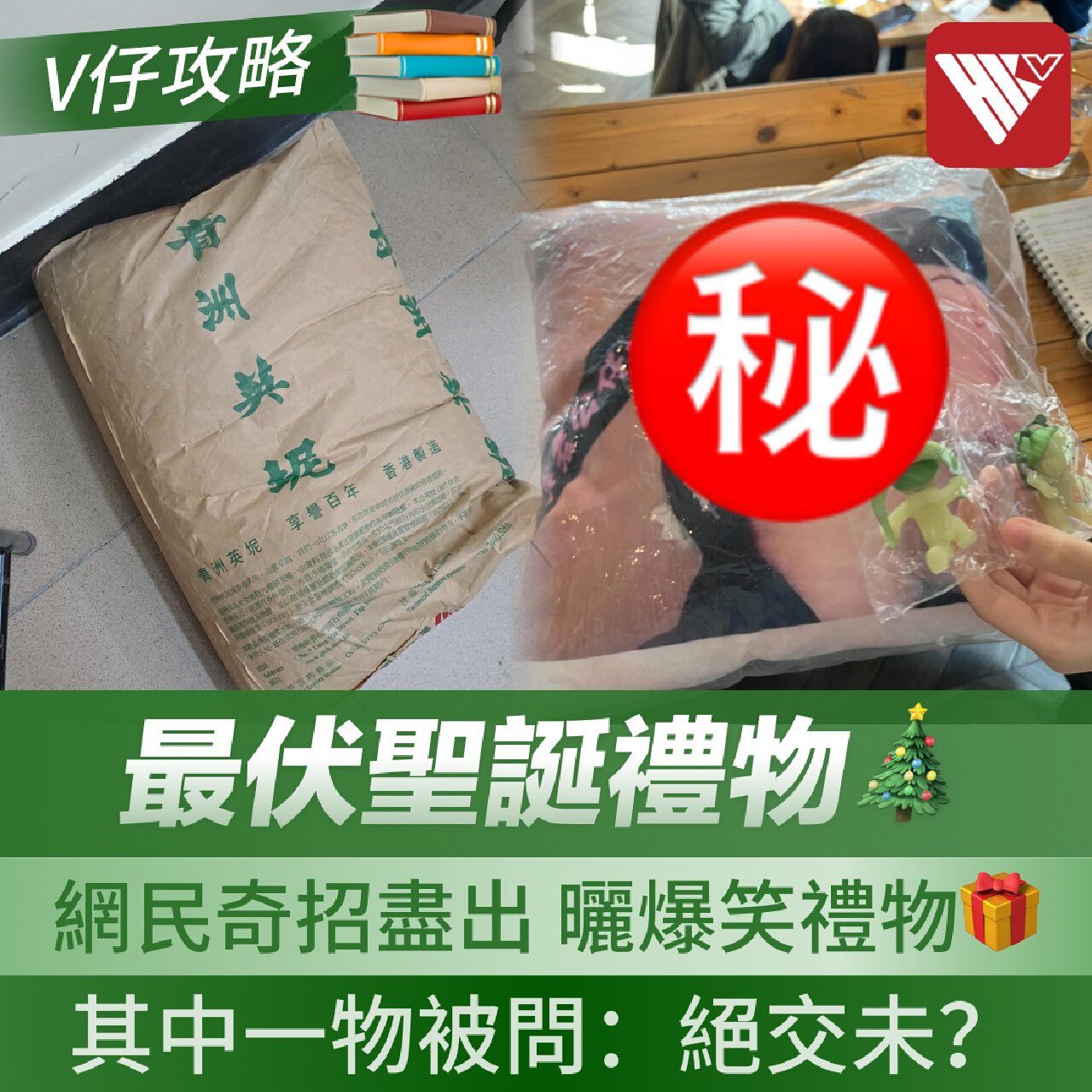 有網民表示曾在聖誕聯歡上抽中一包“青州英泥”,令其他網民笑爆嘴“呢個真心有創意”“有建設性嘅禮物”;亦有網民表示自己收到了何伯何太的攬枕,獲不少回應“絕交未”“全threads最Kam既聖誕禮物頭十名非你莫屬”;此外,更有人“推薦”送假牙固定劑、小心地滑A字牌、膠餐具等令人哭笑不得的聖誕禮物。
