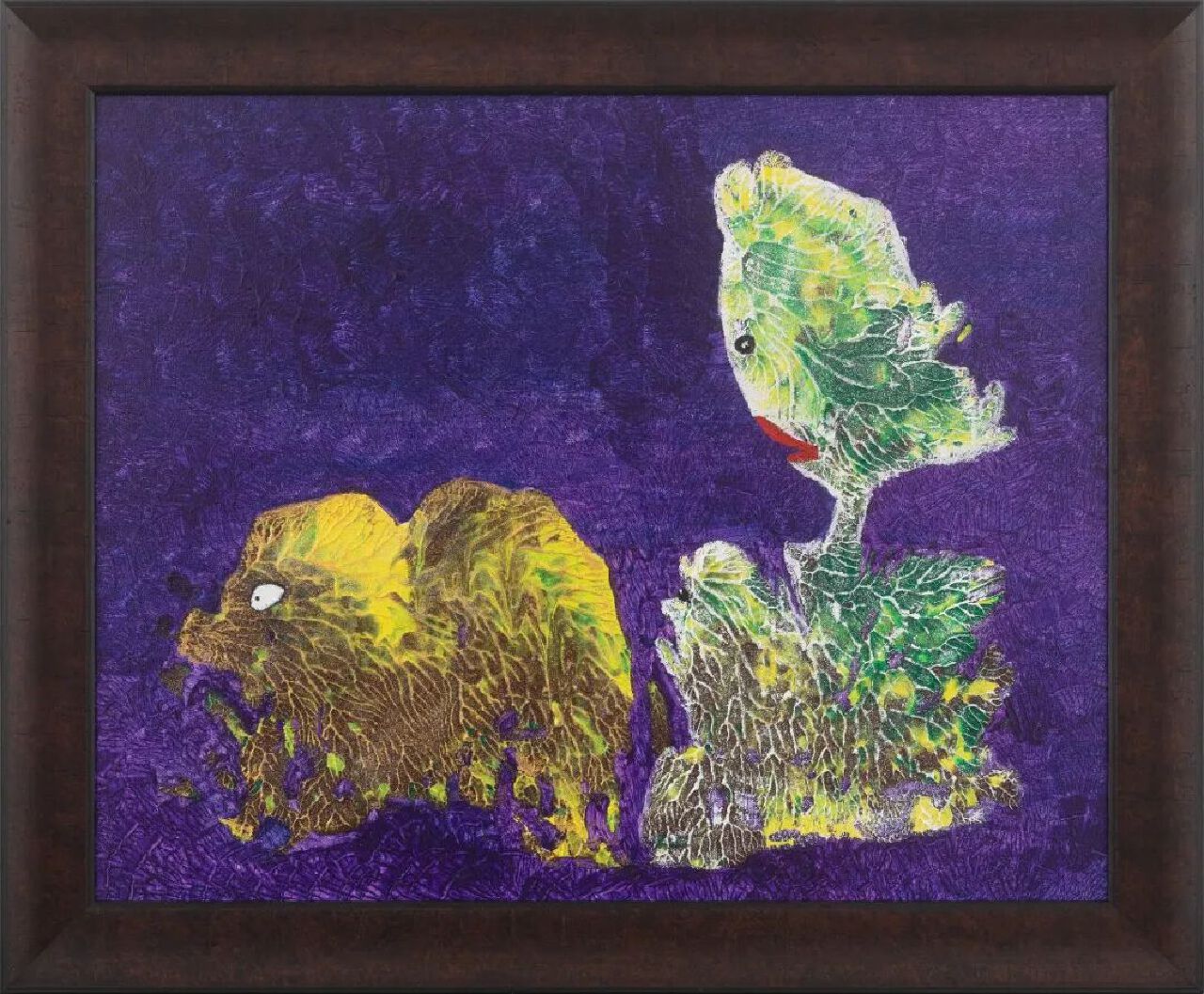 9年前,他路过一家美术用品店,突发奇想,进去买了一干画布、颜料、画笔等,带回家就画了起来。他没有经过科班的训练,他是突然在身体里涌现了这样的冲动,这当然与他对厨艺色香味俱全的心得、以及多年浸润图书行业对图书封面、版式的审美有关,使得他内心蛰伏了多年的绘画表达欲望,在厨房里某个电光火石的瞬间被彻底点燃,狂热地迷恋上用绘画施展厨艺的创作。他拿起画笔,看到颜料,仿佛看到了一应俱全的厨具与调料;面对空白的画布,他仿佛穿越到了远古洪荒之境,感觉意识里早已蓄积几世的奇幻景象喷薄欲出,所有这些皆因他跌宕起伏的人生经历而化为激情,于画布之上恣意绽放。