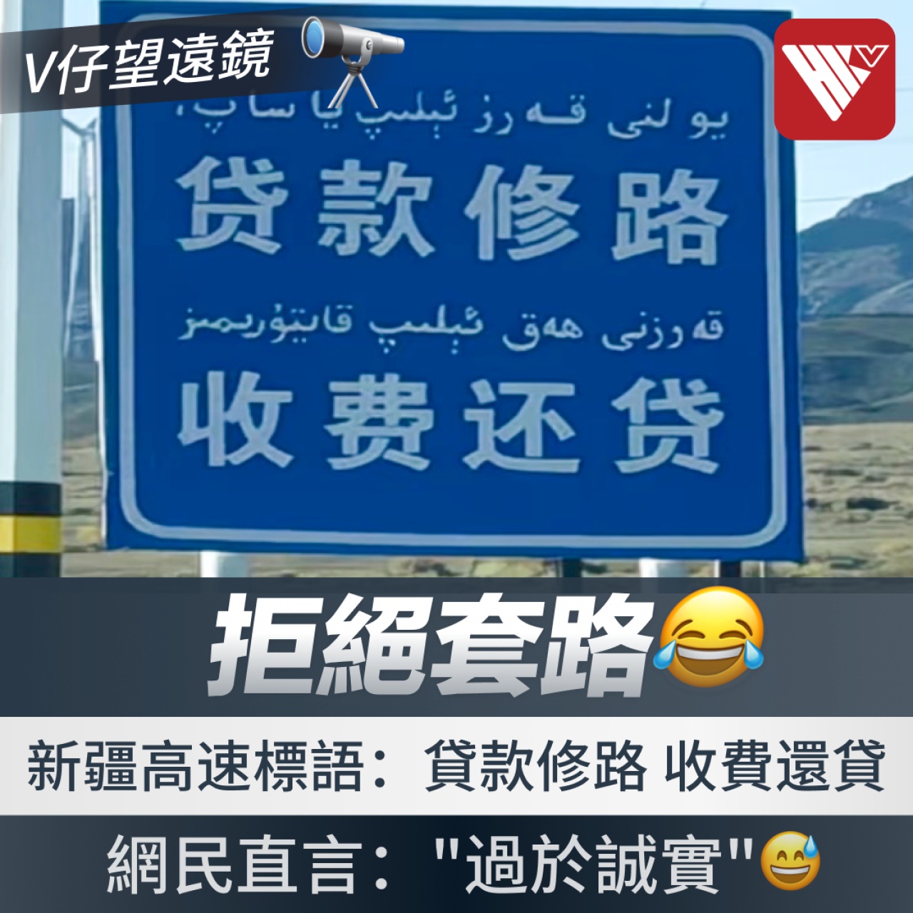 近日,一則關於新疆高速公路標語的帖文在內地社交平台引發熱議。有遊客在新疆自駕遊時,發現高速公路的指示牌上赫然寫著"貸款修路,收費還貸"八個大字,隨即拍照分享,並配文"太喜歡新疆這種溝通方式了"。