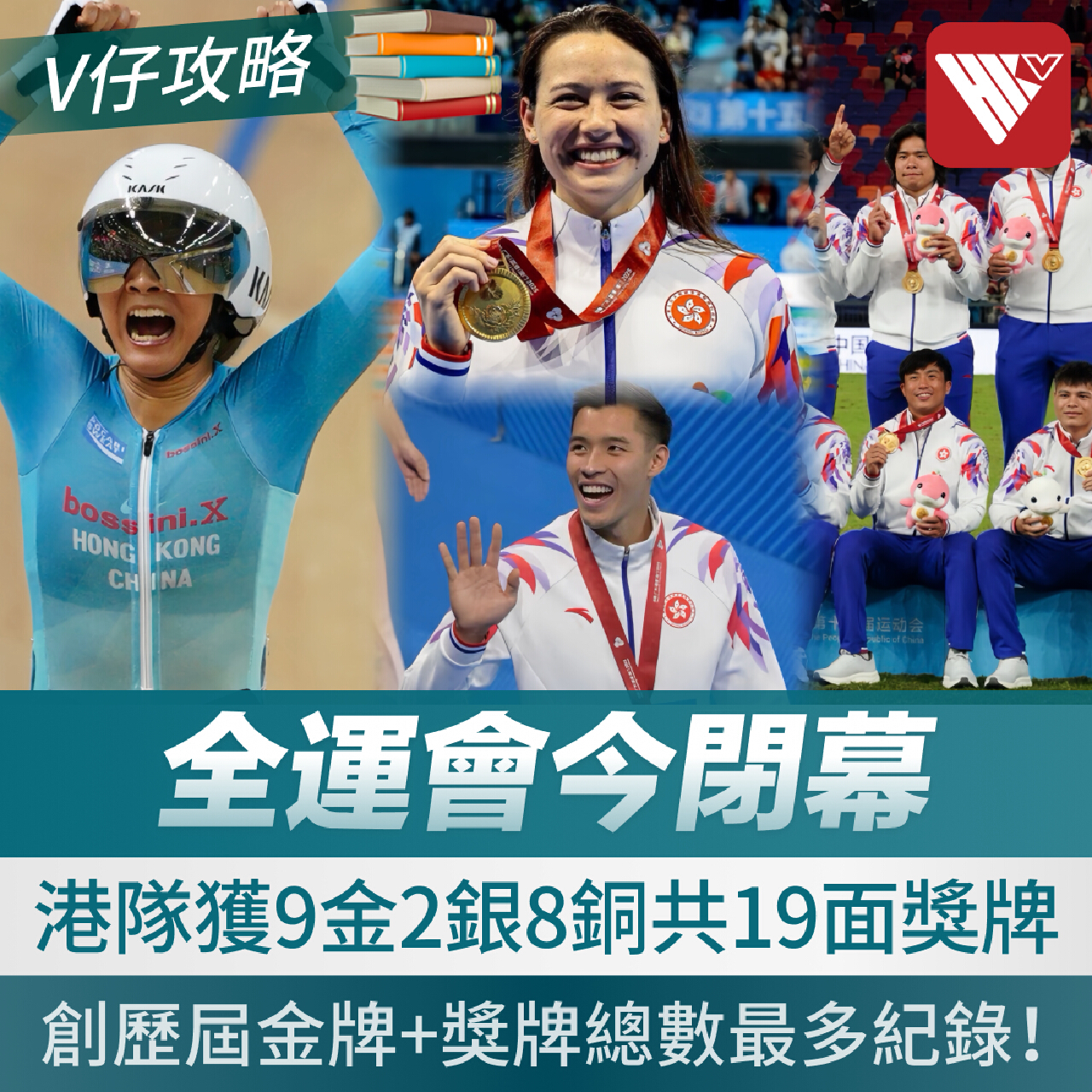 第十五屆全國運動會今日(11.21)正式閉幕。今屆是香港首次以粵港澳三地聯合承辦形式參與的全運會,港隊派出歷來最大規模的代表團——602名運動員出戰28個競賽項目,最終合共奪得9金2銀8銅、共19面獎牌,不但刷新歷屆全運會獎牌總數紀錄,更創下港隊歷屆全運會金牌數之最。