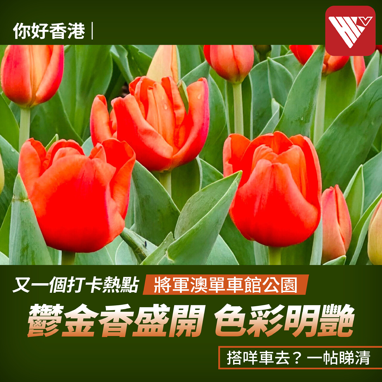 將軍澳香港單車館公園日前栽種了鬱金香,色彩明艷,緋紅、鵝黃、淺粉、玫紅色的花瓣相映成趣,吸引了不少街坊、居民,甚至是遊人前往欣賞。