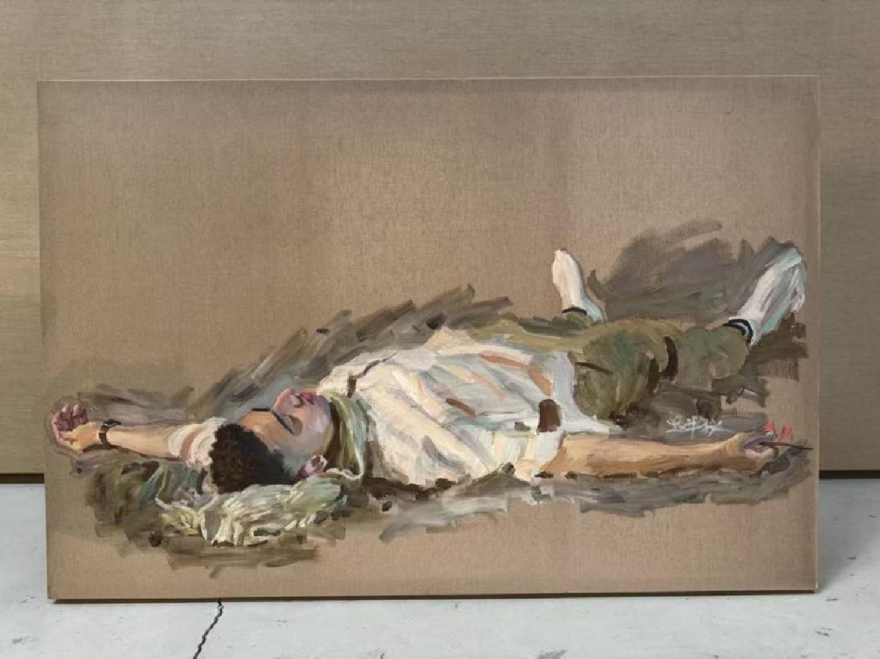赵半狄正在创作的巨幅油画《另一个格尔尼卡》除了对人类道义丧失的抗议,还担负着绘画革新的挑战。一方面,在绘画经过现代主义、后现代主义洗礼后,他发现了一个关于形象绘画的新空间。另一方面,面对AI 制造图像的能力,他会用画笔捍卫人类的尊严!