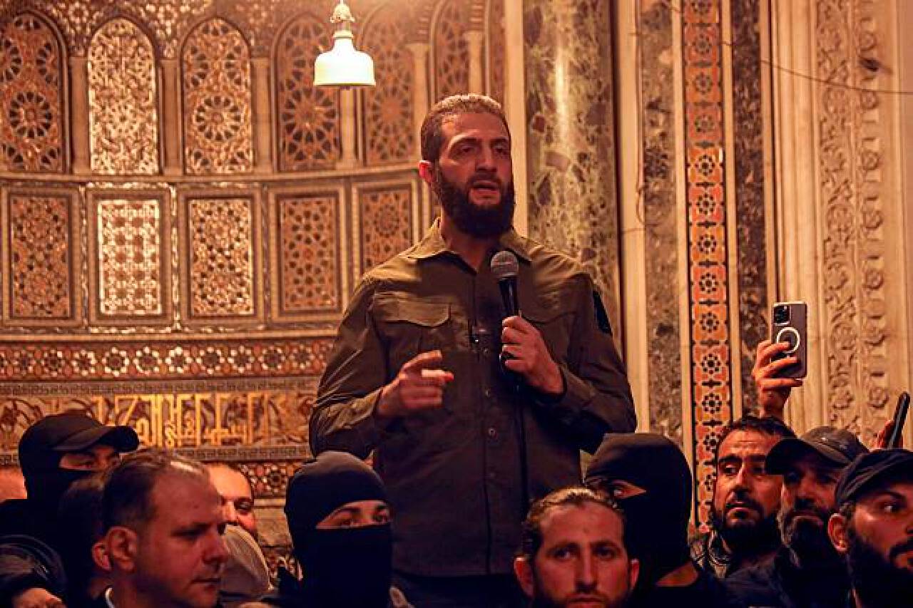 朱拉尼在大馬士伍麥葉革清真寺內發表講話