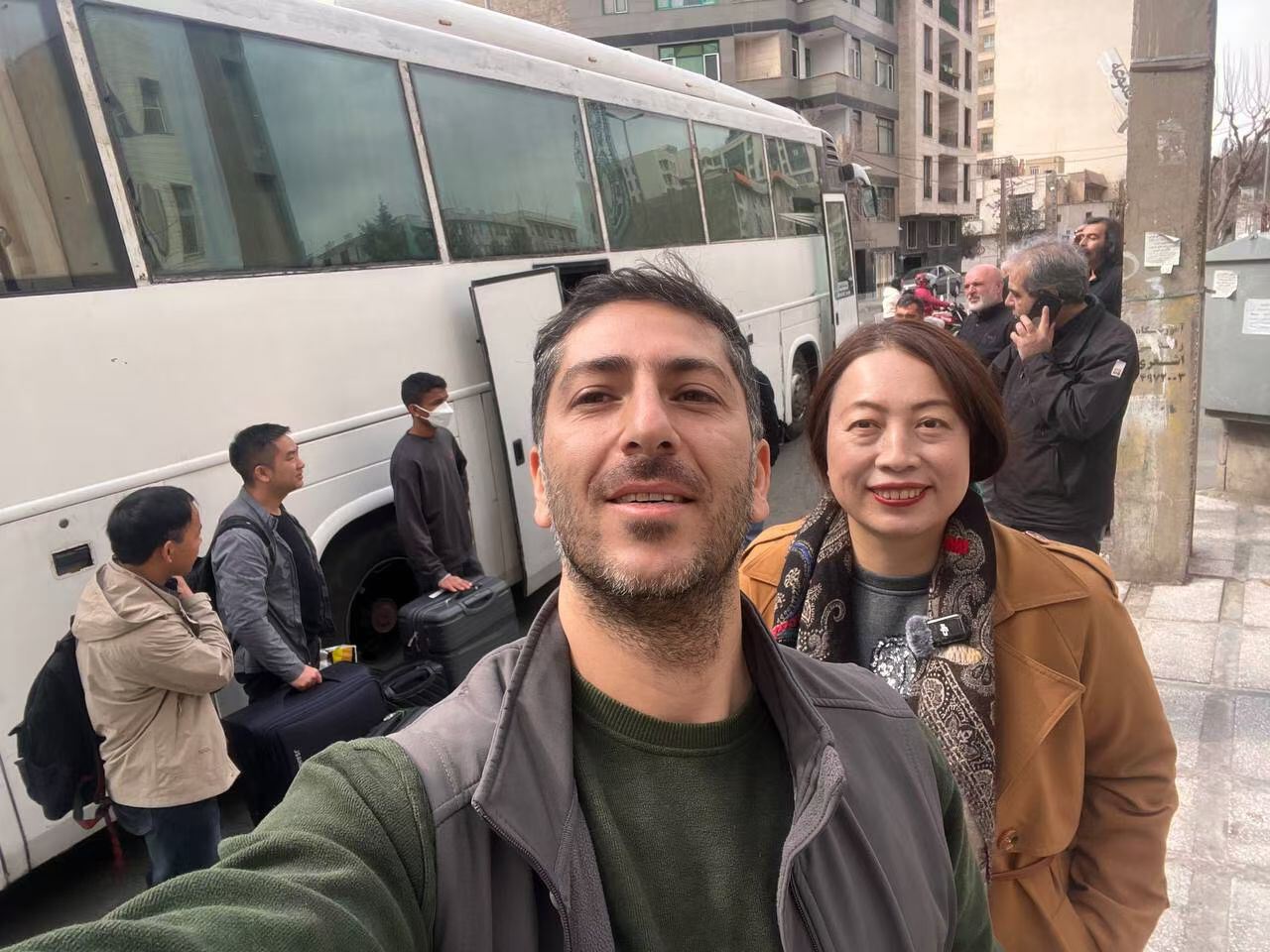 在車里,穆森提醒我,現在情勢敏感,千萬別磨蹭。他說美聯社來了拍兩分鐘就走,我要採訪就容易出事。還有別拿手機亂拍,太敏感。穆森的話,讓我想起今天上午華人撤離時,我聽到領隊提醒乘客:把手機里所有“關於伊朗的東西”刪掉,因為路上可能會檢查;而且大巴十多個小時不會停車,也不會安排上廁所的時間。