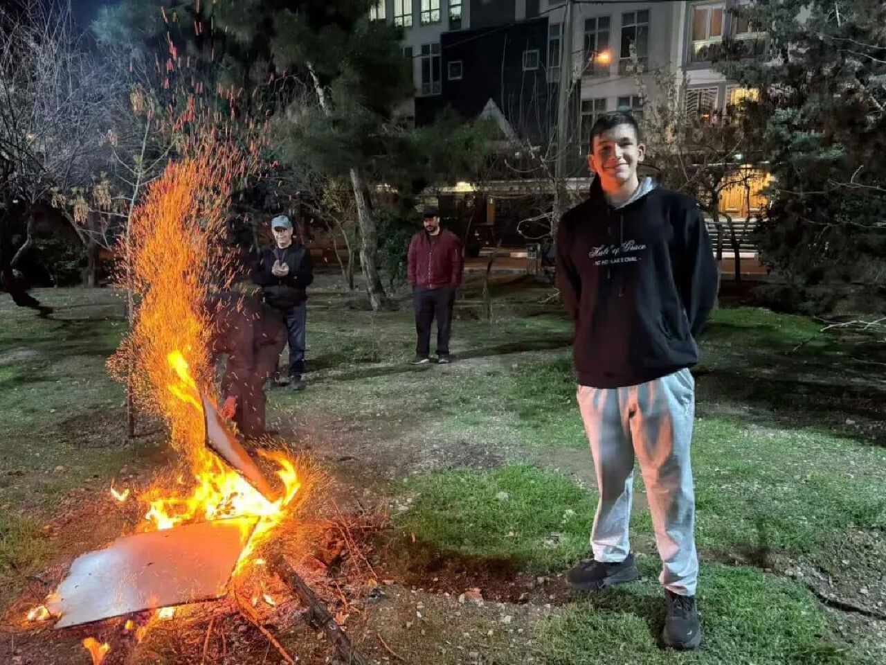 旁邊有一對老夫妻,他們對我說,這段時間每天都過得非常煎熬、非常擔憂,可今天晚上心情卻很好。他們說,眼前的一切將會結束,伊朗會有一個更好的未來。A 先生的兒子馬尼是我們看著長大的,以前還是個胖乎乎的小男孩,現在已經長成一個十八歲的高大青年。他對我說,跳火節是伊朗人非常重要的傳統節日,無論在什麼情況下,他們都會慶祝。我問他怕不怕,他說:“不怕。為什麼要怕?這場戰爭結束以後,會有好的結果,伊朗一定會有更好的未來。”