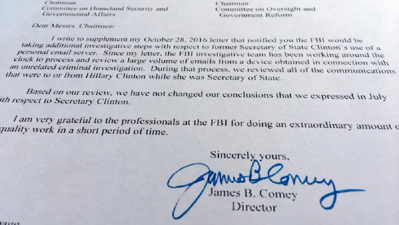 距离总统大选倒计时两天,坐在办公室里的阿贝丁,突然听到外面传来了掌声和欢呼声!希拉里的政策顾问沙利文(Jake Sullivan)站在她办公室门口,然后给阿贝丁一个拥抱。沙利文说:“结束了!” 原来科米刚刚宣布,FBI完成了调查,并没有发现韦纳笔记本有任何新的证据。