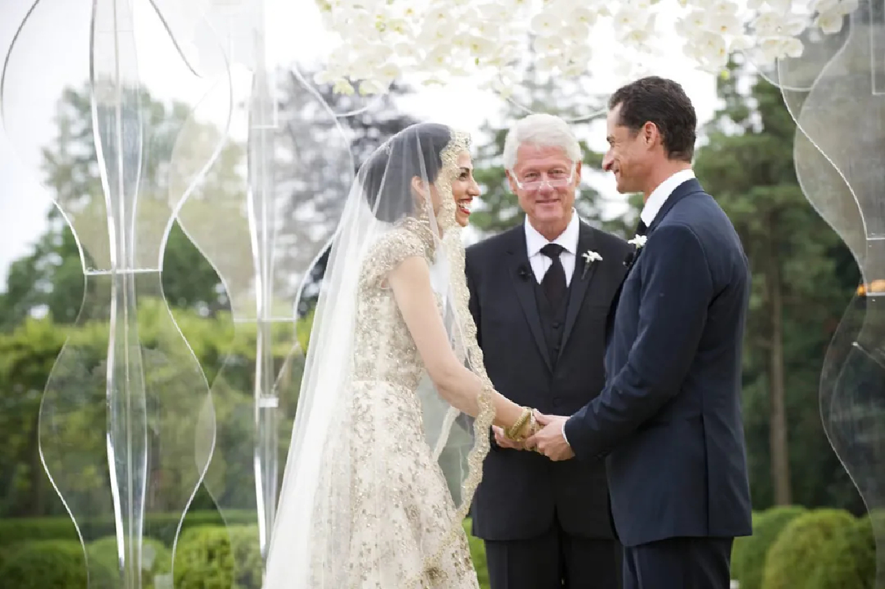 35岁那年,从小到大都没有时间约会的阿贝丁,终于嫁给了自己的初恋,当时美国国会风光无限的黄金单身汉韦纳(Anthony D. Weiner)。那个时候,阿贝丁是参议员希拉里的幕僚,韦纳同样也来自纽约州。两人的组合看起来顺理成章,而且是“强强联合”。