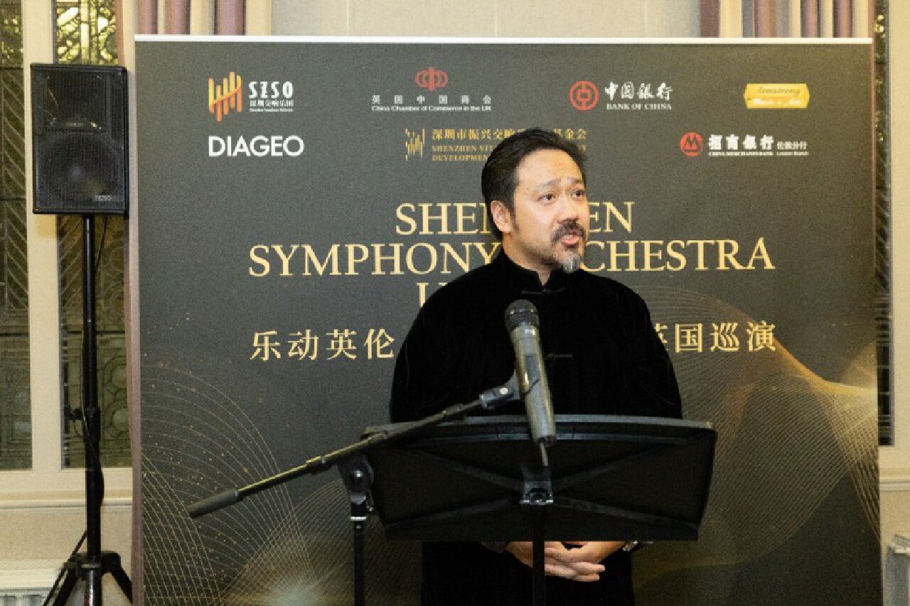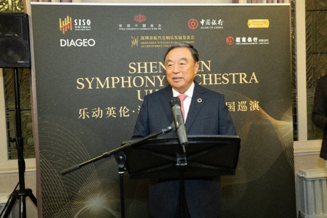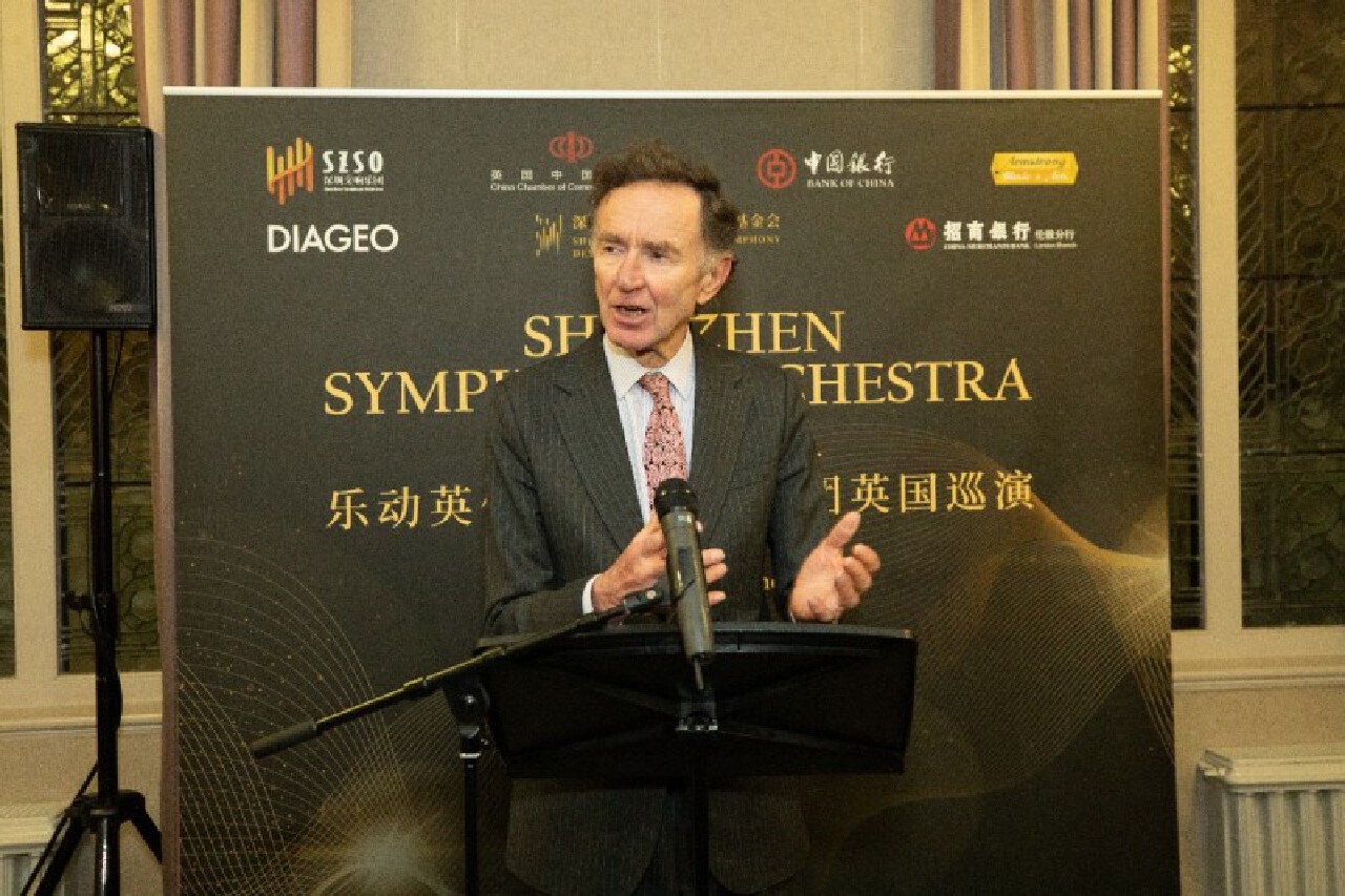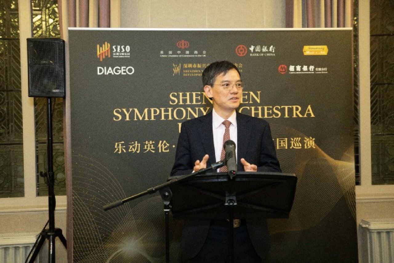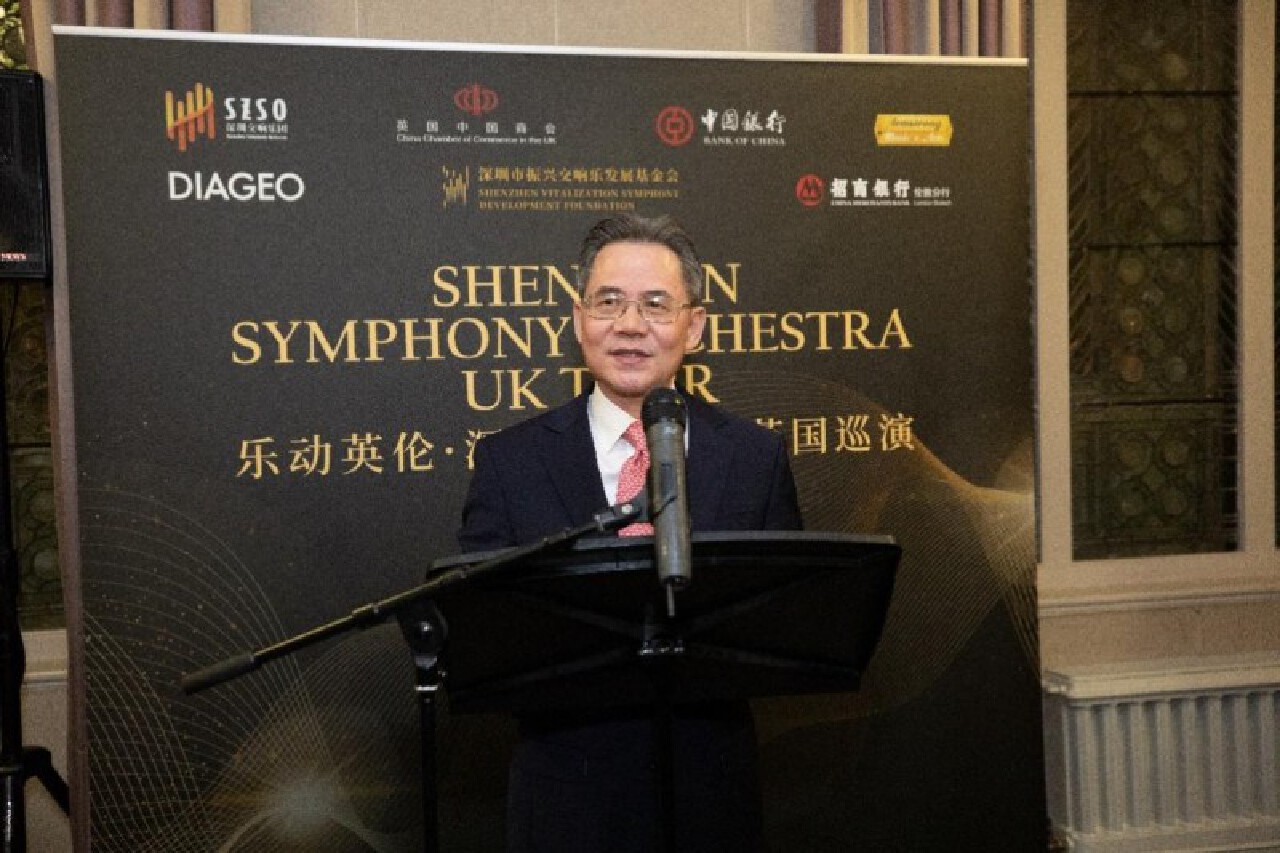 鄭澤光大使在致辭中對深圳交響樂團首次來英巡演表示祝賀,向支持此次巡演的中英人士和機構表示感謝。他介紹了剛剛結束的中國“兩會”主要成果。表示“兩會”提出加快發展新質生產力,以科技創新引領產業創新,全面深化改革開放,進一步促進中外人文交流。強調中國堅持以中國式現代化全面推進強國建設、民族復興,全面推進高質量發展,這將為中英務實合作和文化藝術領域交流帶來更多新機遇。希望中英文化藝術界加強交往與合作,為增進兩國人民友好注入新的活力。