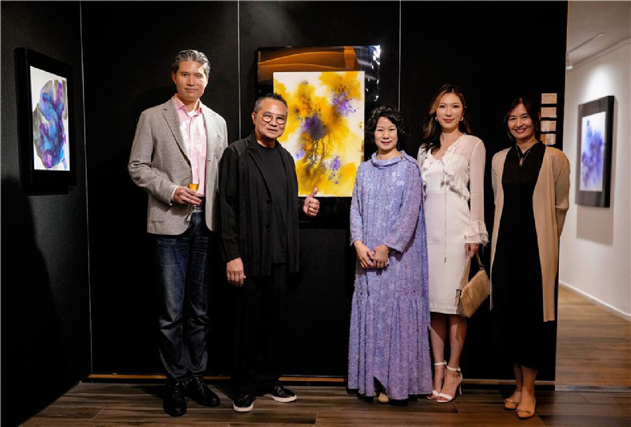 香港美协主席、文联常务副会长林天行(左二)与艺术家曹雅薇(左三)现场合影