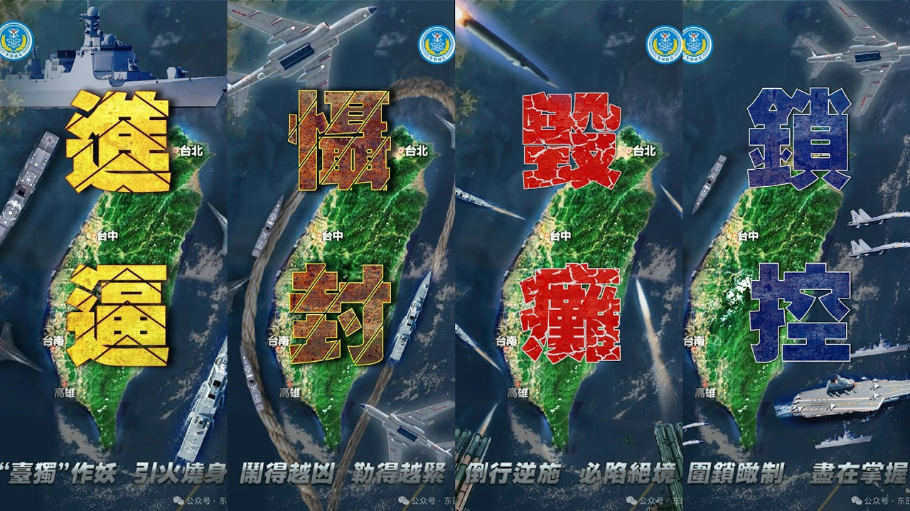 台湾地区的上空,现在飘着八个大字:进逼,慑封,毁瘫,锁控。