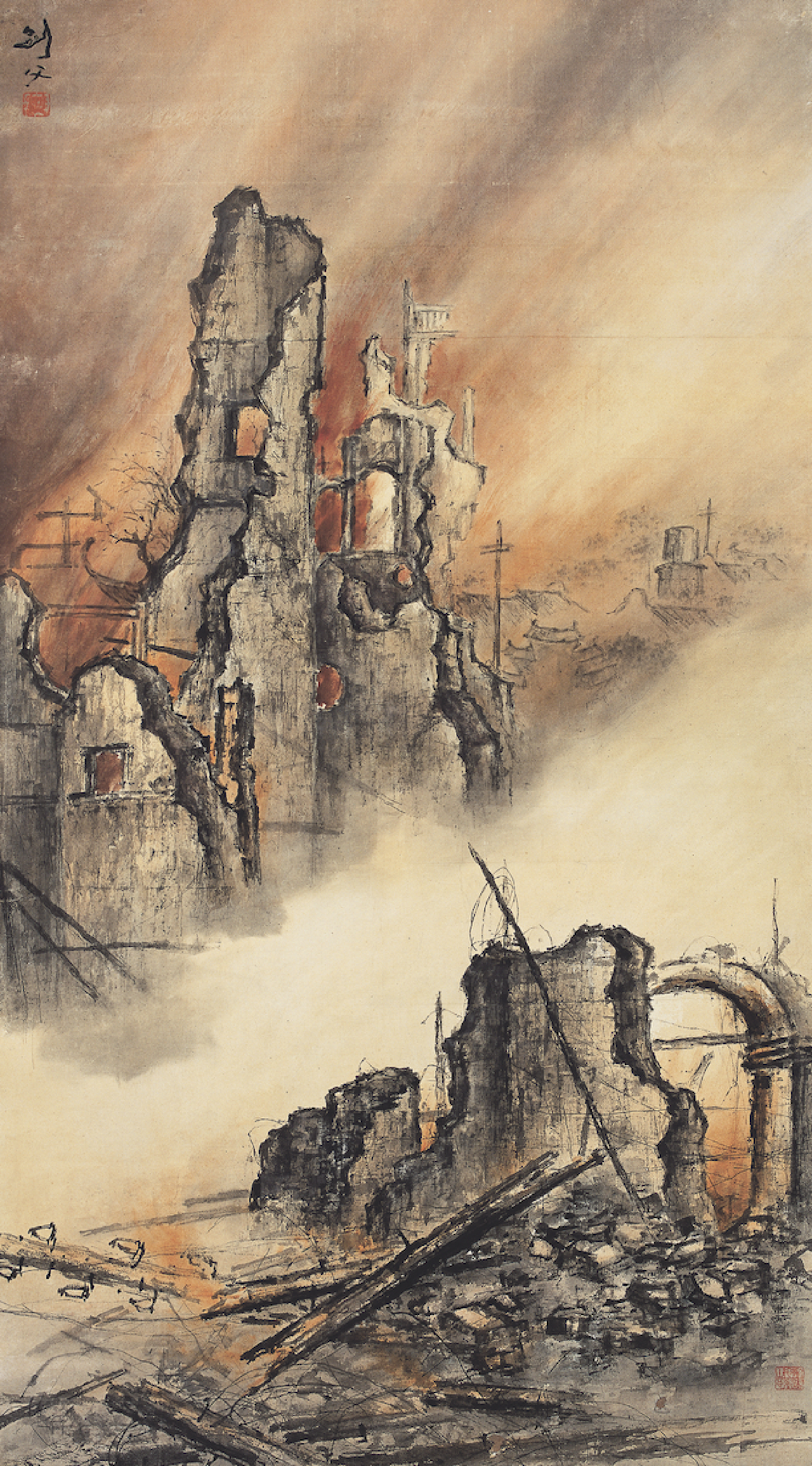 ▲ 左: 高剑父, 东战场的烈焰, 1932; 右: 高奇峰, 松猿图, 1917