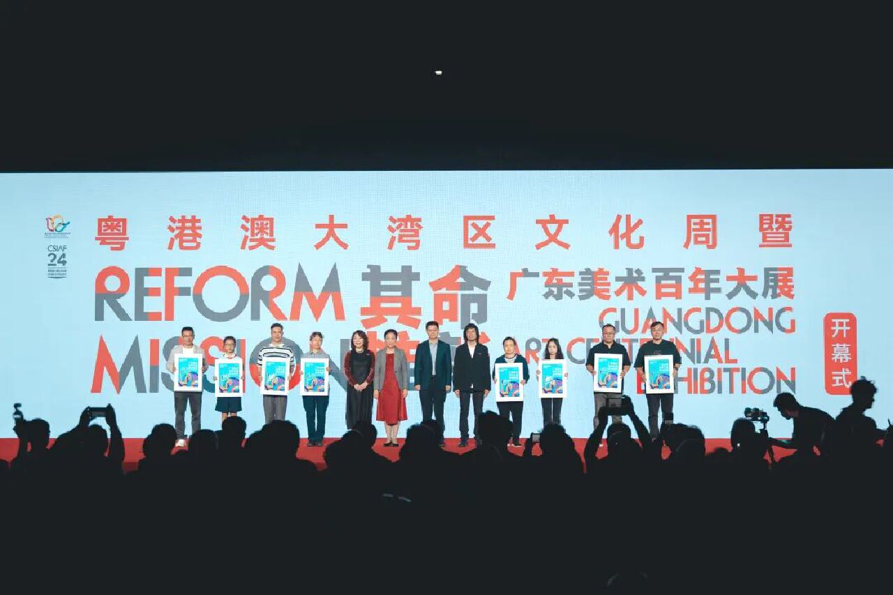 开幕式尾声,嘉宾与市民代表共同为本次文化周揭幕,宣告第二十四届中国上海国际艺术节粤港澳大湾区文化周及“其命惟新——广东美术百年大展“正式启幕。