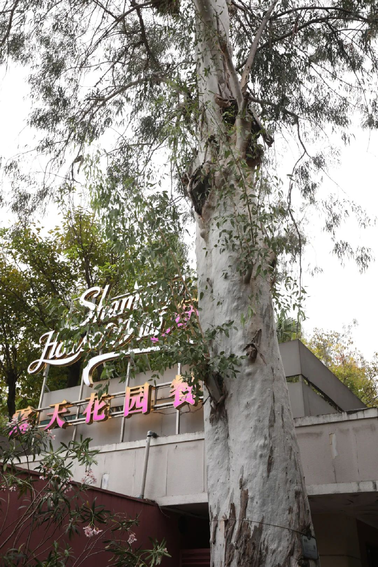 △ 沙面公園“露天花園西餐廳”旁的大葉桉,編號44010300110100010,樹齡176年。 圖/Color China