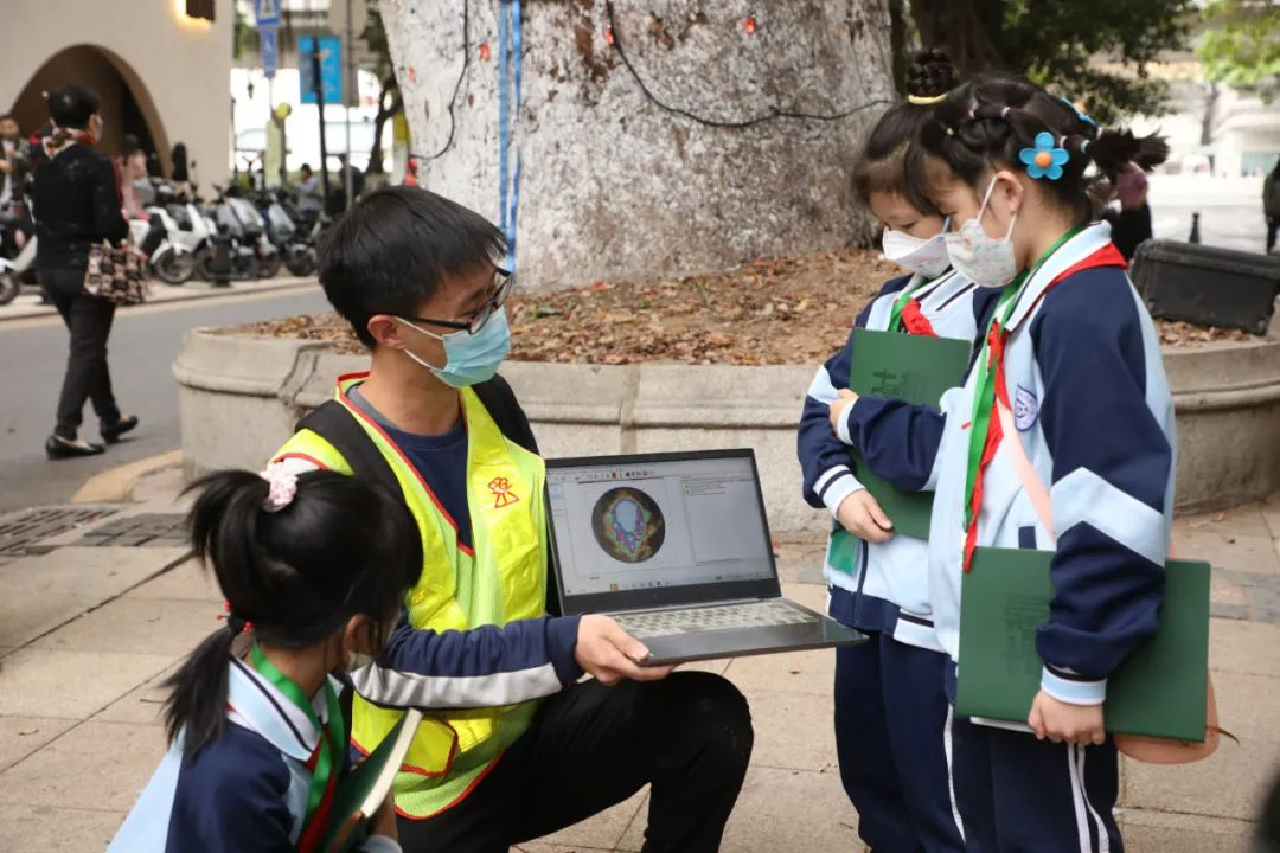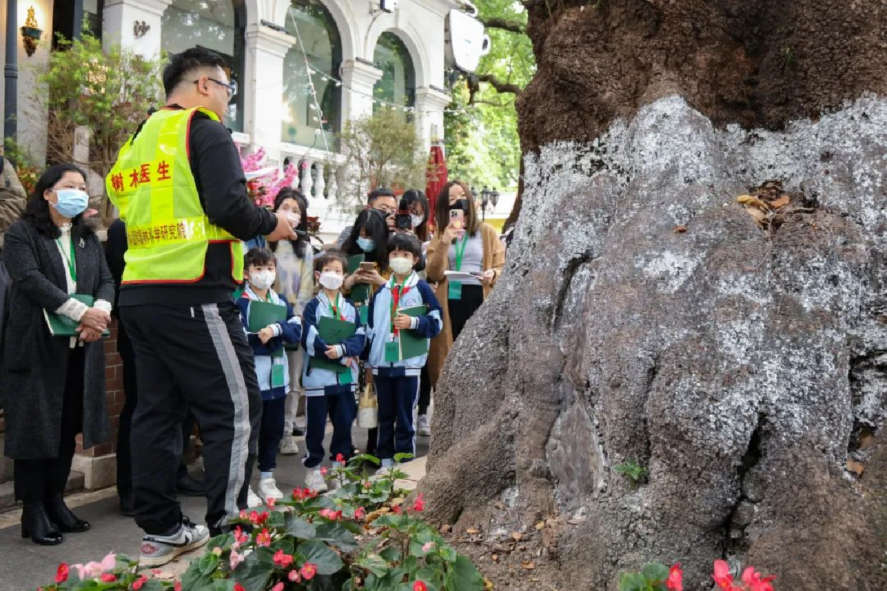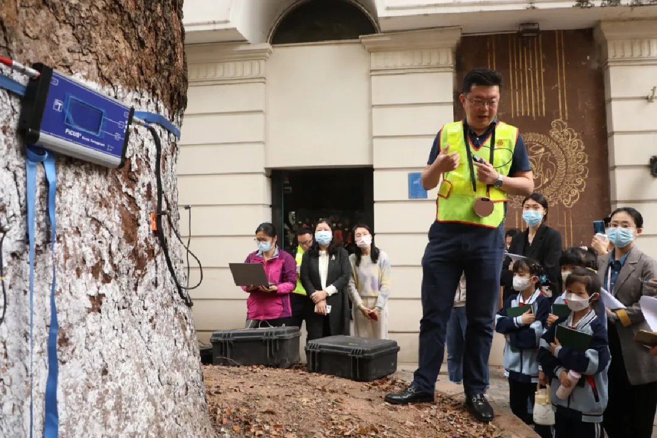 沙面小學學生邱瑾暉説:“島上的優美環境讓我們可以在古樹樹蔭下做操,在古樹環繞的街心花園上玩耍,下課後沿着林蔭小路回家,樹木無處不在。今天學習了觀察古樹健康的科技方法,知道了大樹故事,以後我能更好地向大家介紹島上的古樹。”